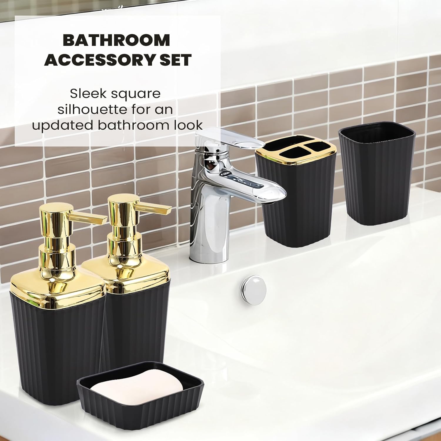 | Included Components | Dispenser, Press-Top Slim Trash Can, Soap Dish, Toilet Brush, Toothbrush Holder |