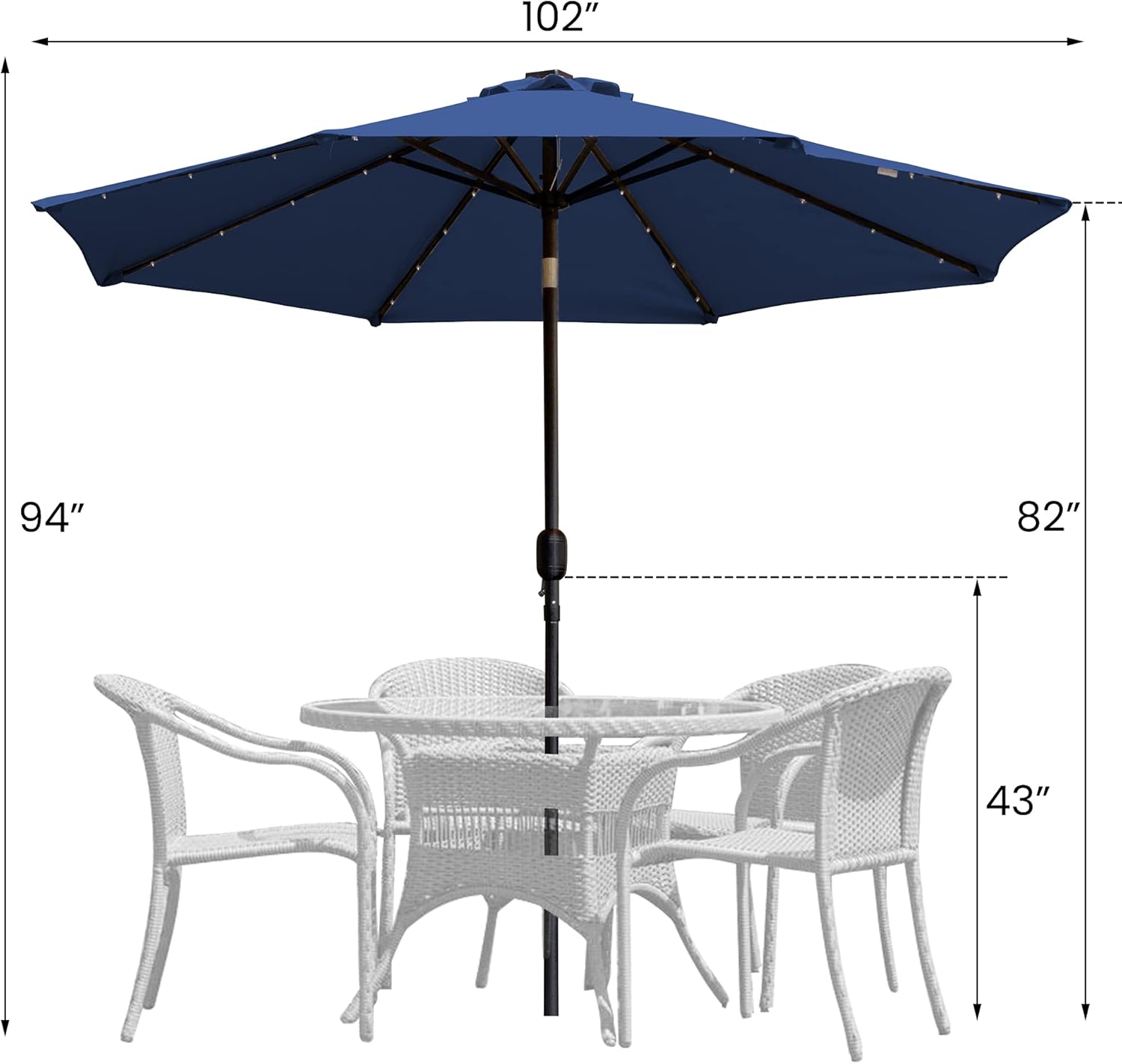 Looking to elevate your outdoor space? Meet the 9' Round Patio Umbrella with 32 Solar Powered LED Lights from Sun-Ray - the ultimate accessory for all your outdoor needs. With its stunning design and innovative features, this umbrella seamlessly transitions from day to night, providing ample shade and stunning illumination along its 8 ribs, featuring 32 LED lights. Crafted with a durable powder-coated steel frame and a polyester canopy, this umbrella provides ample shade on even the hottest of summer days. And with its convenient push-button tilt mechanism, you can easily adjust the angle to your liking. With the solar panel located at the top, this umbrella harnesses the power of the sun to provide stunning illumination along its 8 ribs to keep your outdoor gatherings going for hours without the need for electricity. Designed to fit most umbrella stands, as well as most dining and bistro sets that accommodate umbrellas with lower pole diameter of 1.5in., this outdoor umbrella is both versatile and practical. And with its easy-to-use hand crank canopy lift and push-button lower pole connection, you'll be enjoying your favorite outdoor activities in no time. Transform any outdoor area into your own personal oasis with the 9' Round Patio Umbrella with 32 Solar Powered LED Lights from Sun-Ray. Whether you're entertaining guests, enjoying a meal with loved ones, or simply relaxing in the shade, this beautiful accessory is sure to become your go-to for all your outdoor adventures.