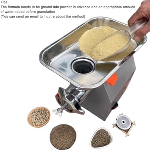 This versatile Electric Feed Pellet Machine is perfect for creating customized food pellets for a variety of settings, including homes, pet stores, and zoos. With a selection of particle boards in sizes ranging from 1.5mm to 7mm, you can easily control the size of your food particles to meet specific dietary needs. Made from durable stainless steel, this machine not only ensures longevity but also offers a robust structure weighing 18kg, with dimensions of 36*21*40cm, making it both durable and practical for regular use. Using the machine is straightforward. Start by selecting the appropriate blade and particle board based on your requirements. After securely fastening the components with screws, crush your ingredients into a fine powder using the included sieve. Mix the powder with water to achieve the right consistency—moist enough to form a ball yet dry enough to crumble with a gentle touch. Once your mixture is ready, simply power on the machine and feed the ingredients through to produce uniform food pellets. Ideal for anyone looking to provide fresh, customized feed for pets or livestock, this Electric Feed Pellet Machine helps you create high-quality food pellets, ensuring optimal nutrition for your animals. Its efficiency and user-friendly design make it a valuable addition to your feeding solutions. Specifications: - Name: Electric Feed Pellet Machine - Color: Silver - Molds: 1.5mm, 2.0mm, 2.5mm, 3mm, 4mm, 5mm, 7mm - Dimensions: 30*24*21CM - Weight: 18kg Packing List: - Electric Feed Pellet Machine * 1 Transform your ingredients into perfectly sized pellets with this efficient and reliable machine, enhancing the feeding experience for your animals.