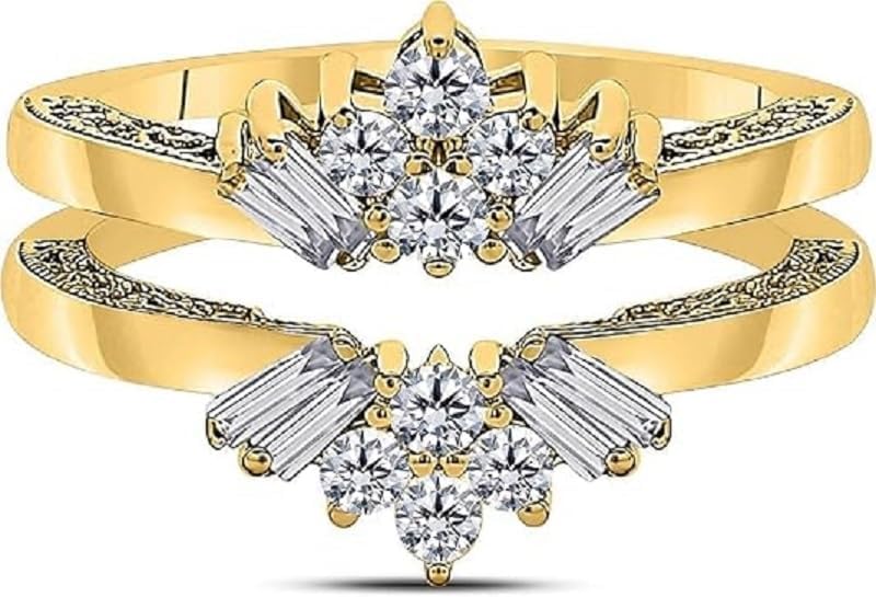 925 Sterling Silver Baguette & Round Cut White Diamond Classy Wedding Enhancer Wrap Ring Guard for Women's In 14K Yellow Gold Finish