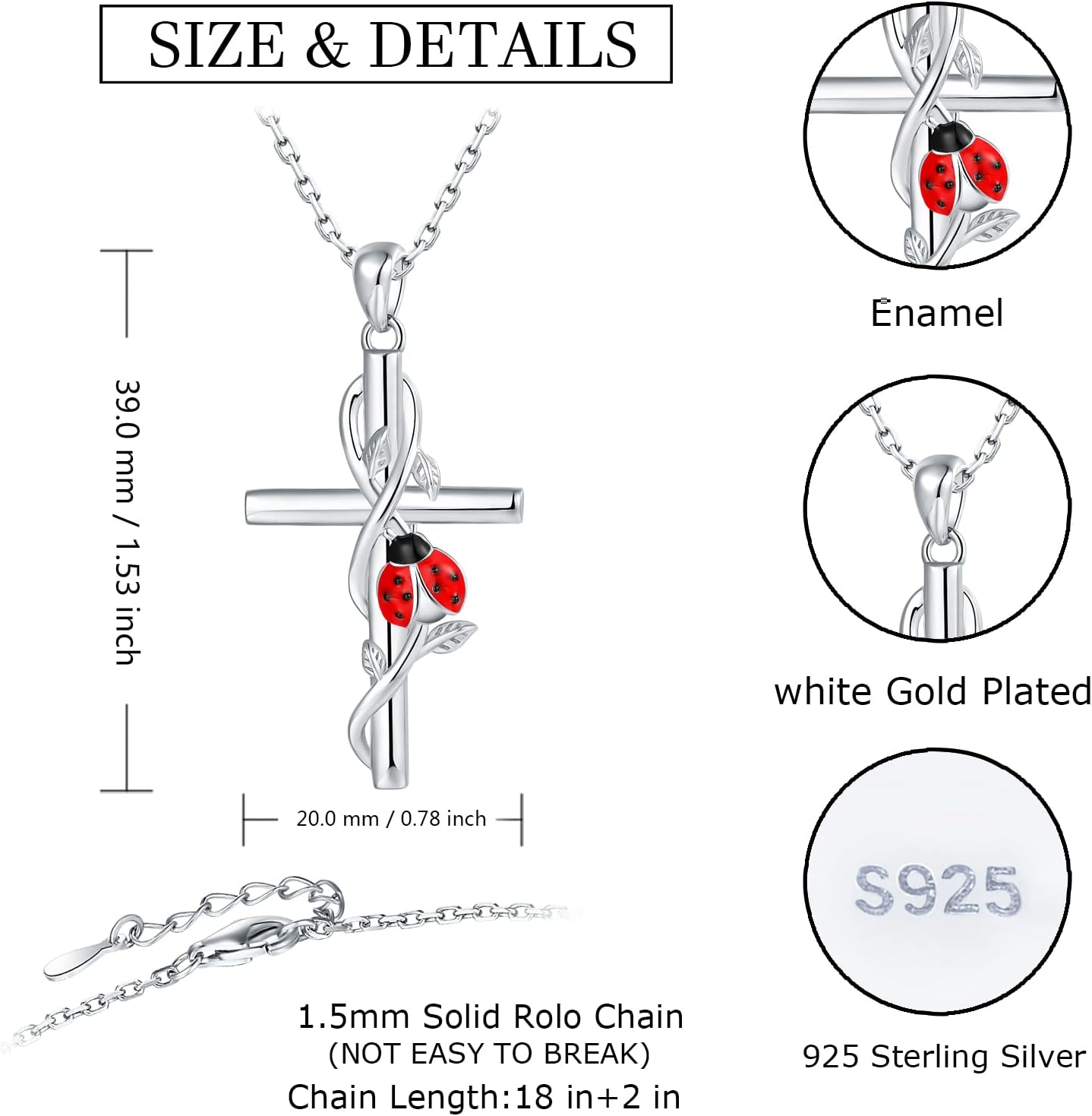 • Premium Material: This pretty ladybugs necklace are manufactured with high grade sterling silver,hypoallergenic & nickel-free,which is safe for sensitive skin.Adopted super craftsmanship,sturdy and delicate. High polish ensures good color.