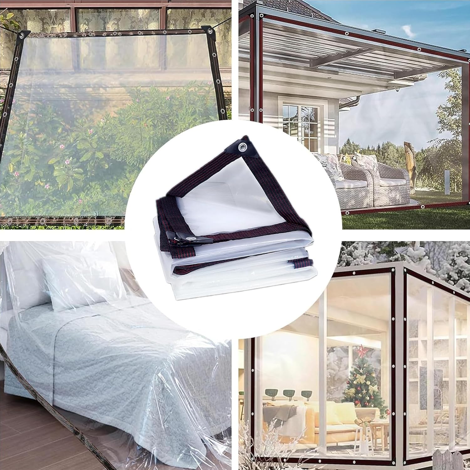【Premium materials】Transparent tarpaulin is made high-quality Polyethylene (PE)material, high light transmittance, rot-resistant. Cover tarpaulin easy to clean and has good weather resistance,temperature resistance,Transparent tarpaulin can also serve as wind protection,dust protection,rain protection,Can be used in several seasons 【With rope】Our transparent outdoor cover has a hole at the edge every 1m, which you can conveniently attach and remove, and also can fix the transparent tarpaulin firmly, thickened angle, easy to attach, each corner makes this polyethylene waterproof The cloth is easy to tie and attach 【Excellent workmanship】Cover tarpaulin Waterproof with eyelets ,Six-lane machine stitching lines on the edges, not easy to damage. Transparent tarpaulin use metal buttonhole protection,strong and durable, long service life. Transparent tarpaulin Black triangle protection at four corners, increase stability and, firm and beautiful 【Versatile】Waterproof tarpaulin transparent for facilities,pets,windows are used to maintain temperature and waterproof.it can also be used for roofs,firewood,cars,Greenhouse,Henhouse,Porchboats,Patio,Plant,to prevent the penetration of snow and rain.you can also cover your sofa and furniture with a transparent tarpaulin to avoid dust pollution 【Outdoor Essentials】Our Transparent tarpaulin can help you very well,In winter, Waterproof tarpaulin can be used,Keep your greenhouse, pets and plants warm In summer, the Transparent tarpaulin can protect pets, flowers and plants from sunlight and rain Material:Polyethylene Color: Transparent SIZE: (3.3x6.6FT)1x2m (3.3x9.8FT)1x3m (4x6FT)1.2x1.8m (6.6x6.6Ft)2x2m (6.6x9.8Ft)2x3m (6.6x13Ft)2x4m (6.6x16.4Ft)2x5m (6.6x20Ft)2x6m (8x10Ft)2.5x3m (9.8x9.8Ft)3x3m (9.8x13Ft)3x4m (9.8x16.4Ft)3x5m (9.8x20Ft)3x6m (13x16.4Ft)4x5m (13x20Ft)4x6m