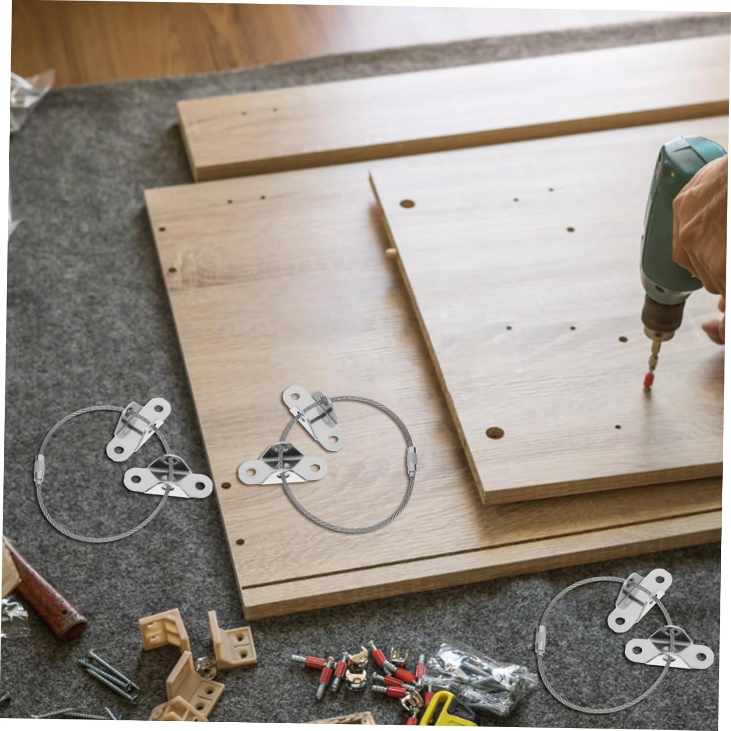 Package List 18 x brackets 18 x expansion plugs 18 x long screws 18 x short screws 9 Features -Material: bars -Color:Silver large -Size:4.20X1.50X1.30cm/1.65X0.59X0 falling. - Multiple strands cable, will not break after pulling, resistant against and without. - Textured connector, increase its friction, easier for you to and connect wall. - Adopt thickened material, strong bearing, beautiful and durable to use double door lock. - Child proofing supplies and TV and furniture protector, these straps are must have for every family with curtain. - With self-tapping screw and expansion , it will firmly grip onto the wall drawer.Goods Information furniture Features the material, which has high durability, to deform.Anti Tip Furniture Straps Fine workmanship, ensures practicality.multifunctional furniture This furniture anchor set is made of , which can withstand long-lasting use