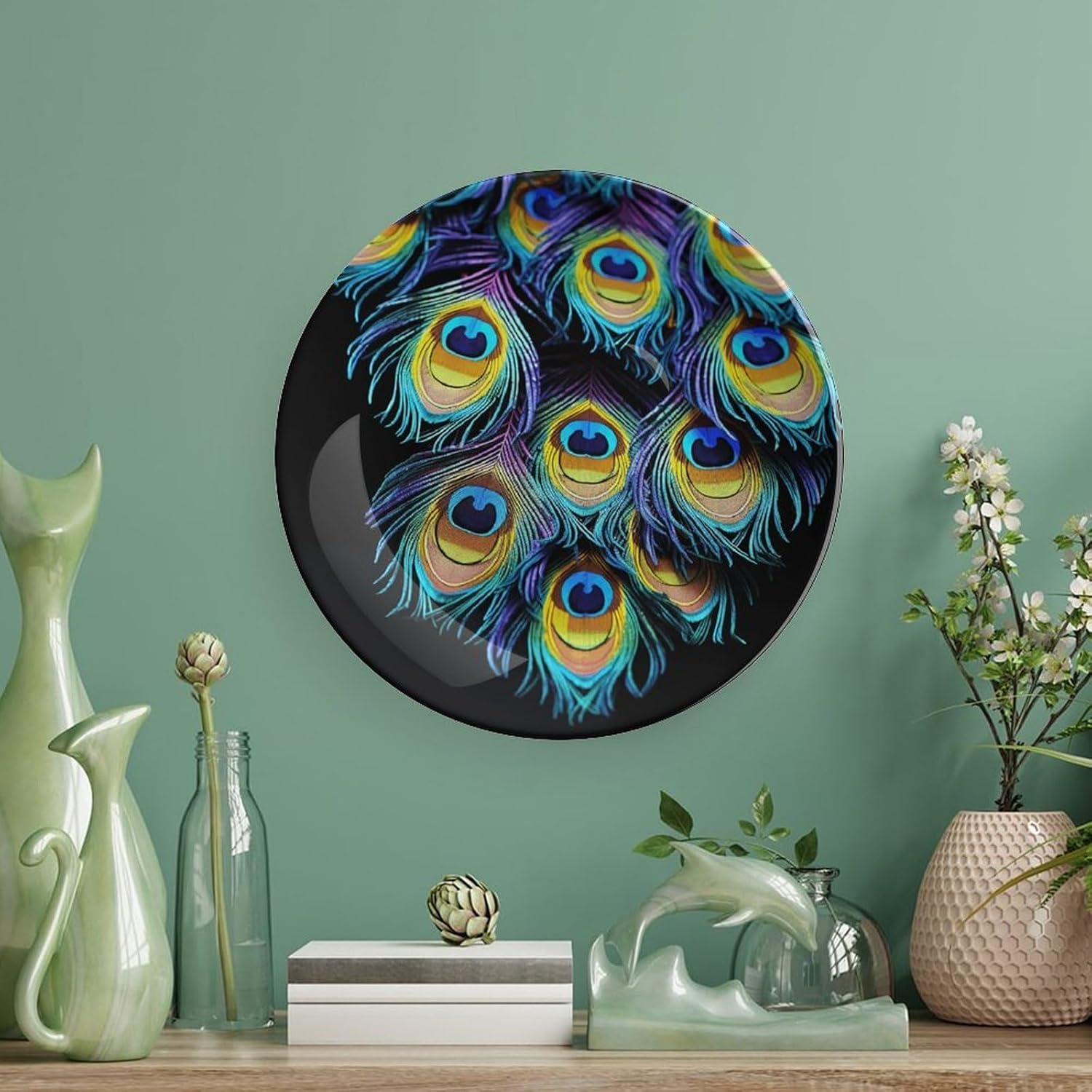 Decorative Plate for Display, Bone China Decorative Plate, Ceramic Dinner Plate with Stand, Vertical Ceramic Plate for Home Office Kitchen Table/Wall Hanging Decor