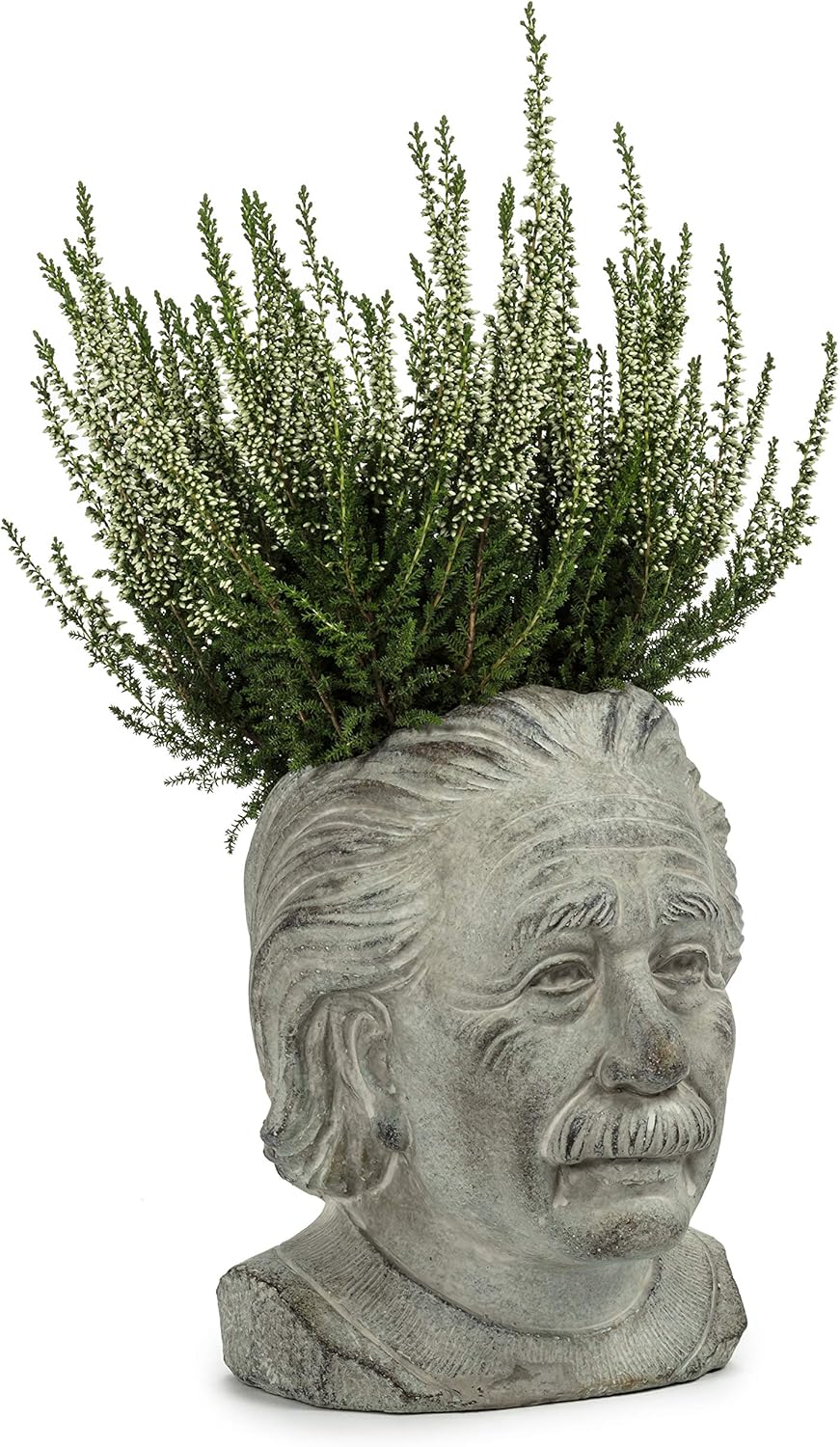 No need to break out your calculator to solve your decorating problems -- because this beautifully sculpted Small Einstein Head Planter is sure to give you all the right answers. Crafted out of cement, there's no better place to let your blooms blossom than this famous physicist's head