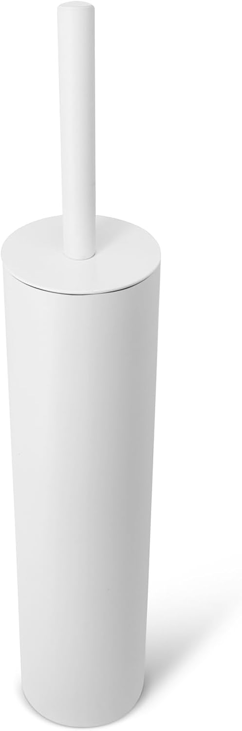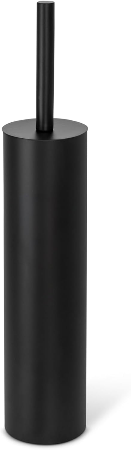 Elevate your bathroom maintenance with this sleek matte black toilet brush that combines functionality with modern aesthetics. The tall cylindrical holder provides discreet storage while keeping the brush readily accessible. Its sturdy construction and ergonomic handle ensure comfortable grip and effective cleaning. The long-lasting bristles are designed to reach under the rim and other hard-to-clean areas with ease. The freestanding design allows for flexible placement, while the weighted base provides stability. The minimalist style complements any bathroom decor, from contemporary to traditional. The holder's enclosed design helps maintain a tidy appearance while protecting the brush when not in use. Perfect for homes, apartments, or office restrooms, this toilet brush offers a practical solution for everyday bathroom maintenance.