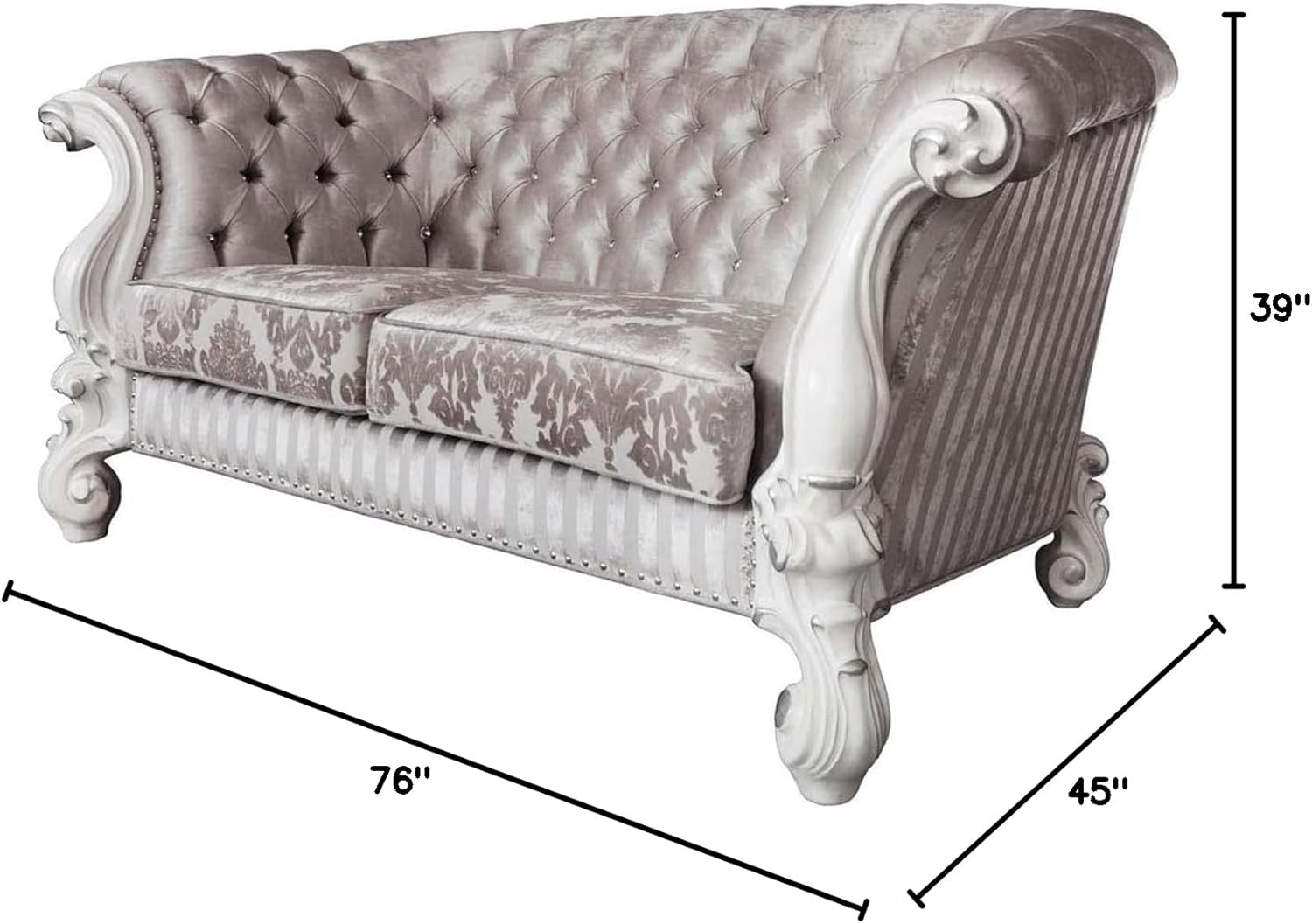 Creating an elegant and traditional design in the living room, the loveseat is your ideal choice. Featuring durable wooden frames, sleek fabric upholstery, and scrolled molding legs. This loveseat also has deep seating and exceedingly comfortable cushions specifically designed with your comfort in mind. This loveseat is sure to impress both you and your family.