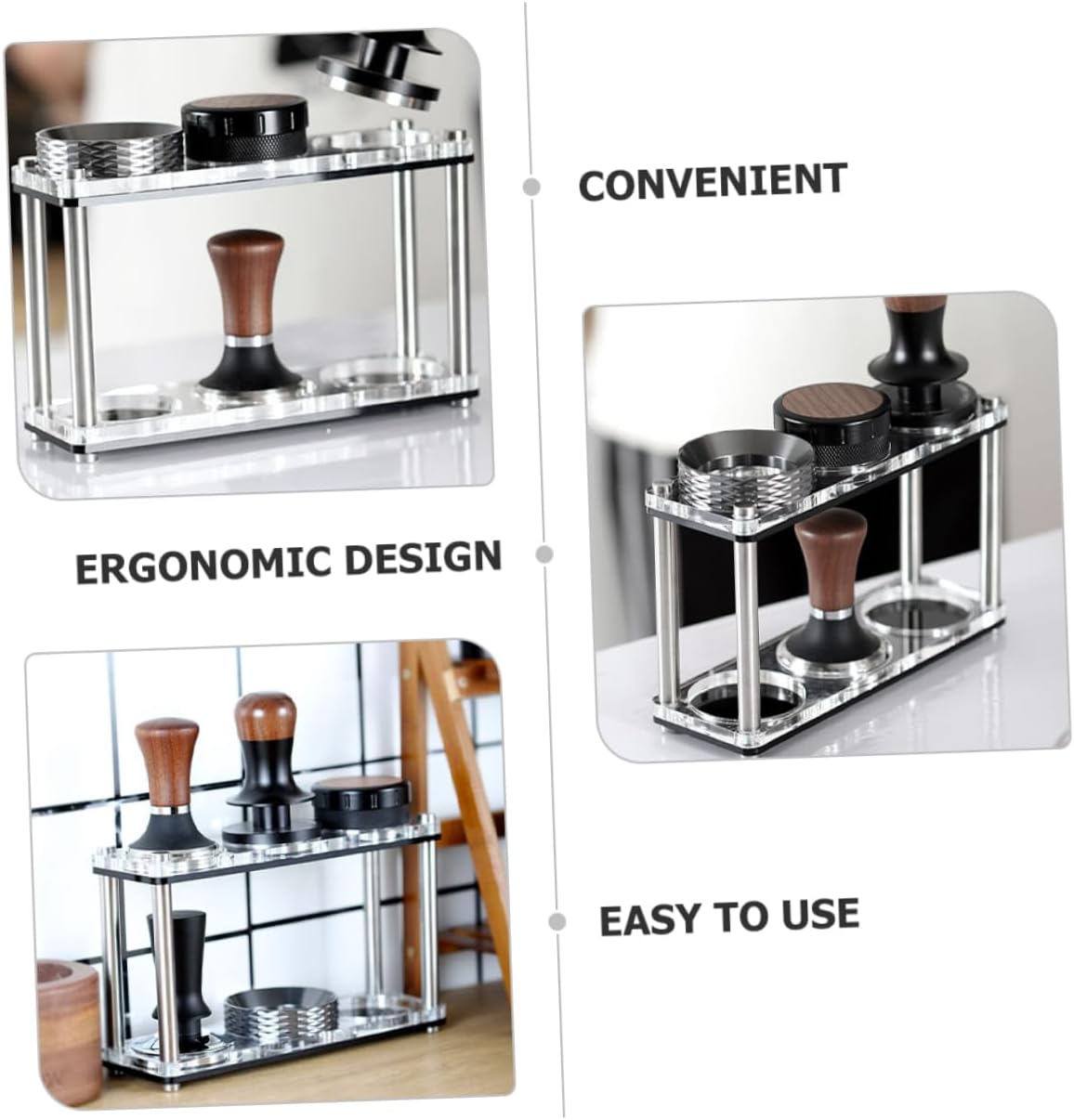 Package List 1 x storage rack Features - Note: with 51/53/58mm storage slot -Material:Stainless steel, acrylic box -Color:Black Coffee Accessory -Size:23.00X12.50X7.70cm/9.04X4.91X3.03in tamper - Owning the strong wear and break resistance ability, very It can be used many times and help you Coffee Shop Accessory. - Smooth surface and ergonomic design, comfortable to use The appearance design of product is simple and generous puck. - Light weight and compact size, easy to carry and store The assistant for helping storage your tool . - design of tamper holder and container holder saves space craftsmanship and elegant appearance organizer. - The storage rack base design is stable, not easy to slide, to safety holder.Goods Informationespresso tamper holder This storage holder is manufactured with stable materials, so that it can serve you for many years.Coffee Tamper Stand With this storage rack, it will bring much convenience to your life.Wear-resistant Tamper Storage Rack Good material that can storage holder durability and practicability