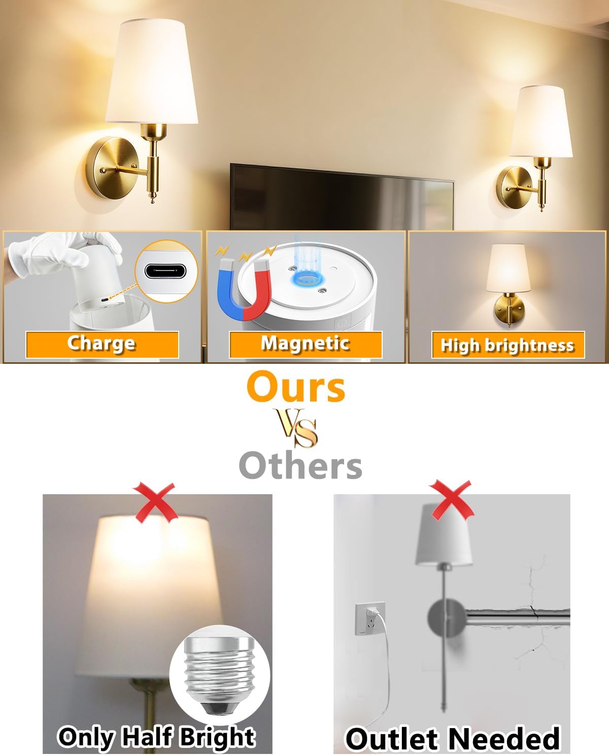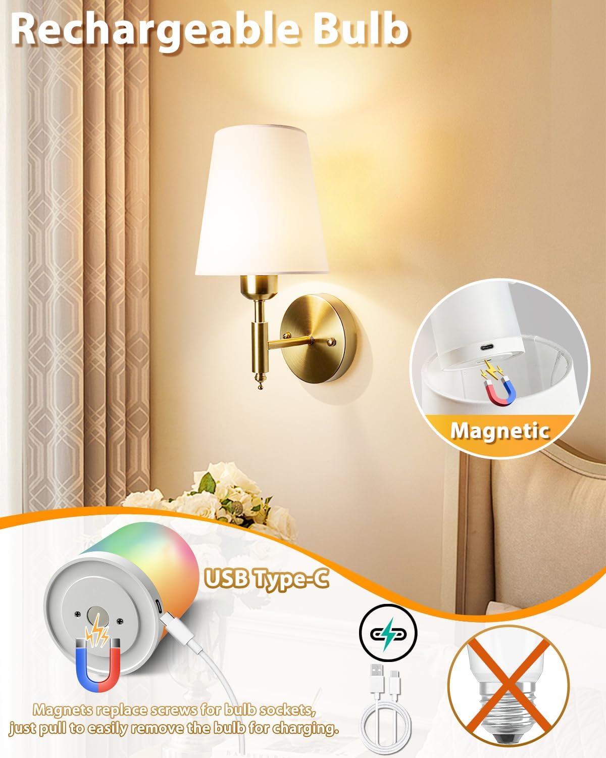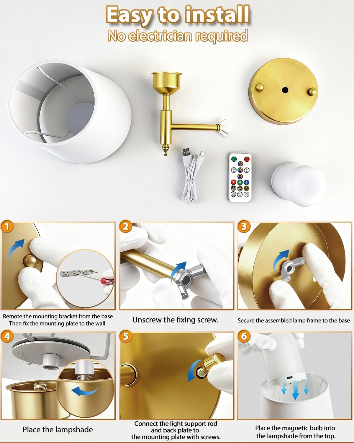 | Included Components | 2 metal lamp holders, 2 sets of screws, 2 white fabric lampshades, 2 Magnetic Bulbs, 2 Remote Controls |