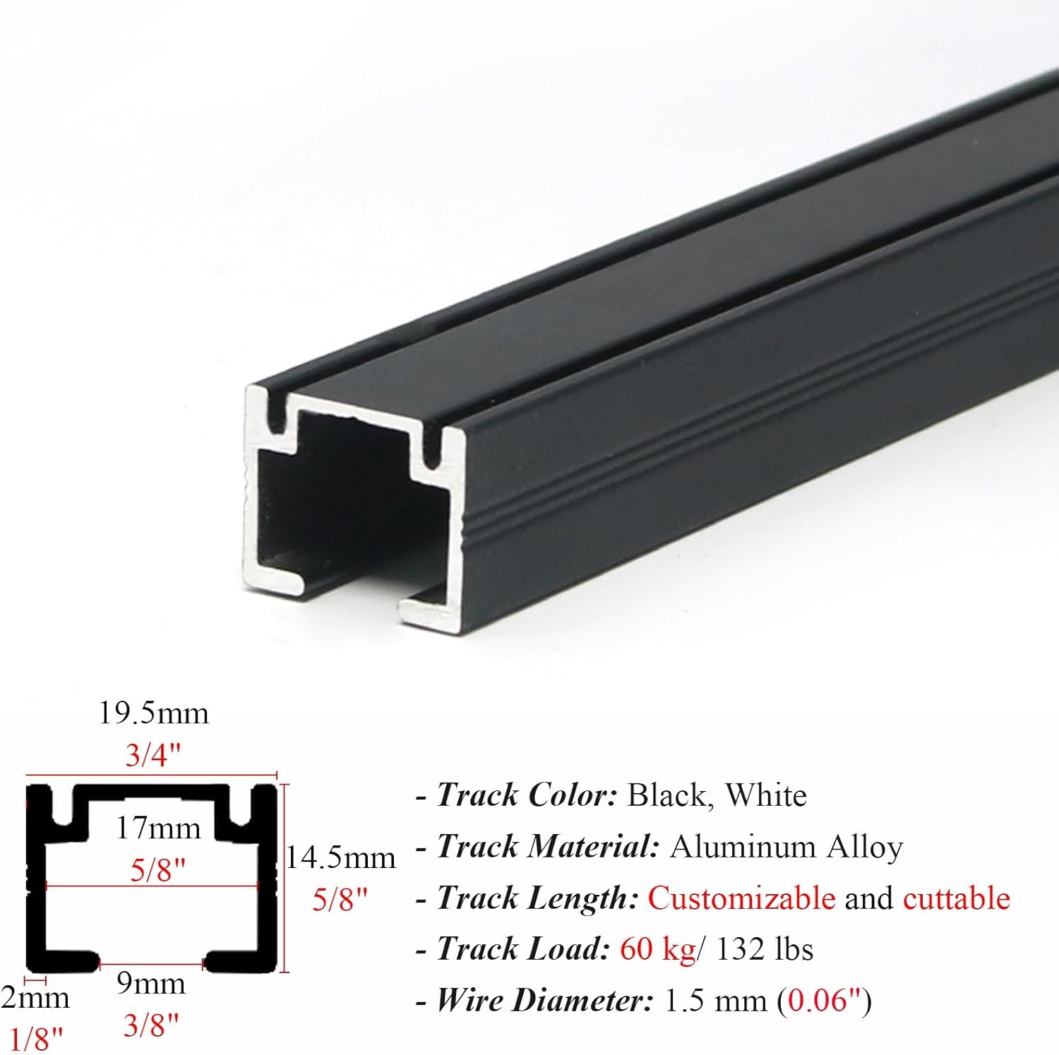 Are you looking for a hassle-free way to hang your pictures? Our innovative picture hanging system is designed to eliminate the frustration of drilling multiple holes and risking wall damage. With adjustable hooks and pulleys, you can easily position your artwork without compromising your walls. This customizable wire hanging solution is perfect for various frame sizes, making it ideal for displaying paintings, photos, mirrors, and other artwork in your home, office, or gallery. **Product Specifications:** - Track Color: Black, White, Silver - Track Material: Durable Aluminum Alloy - Track Length: Customizable and cuttable to fit your needs - Track Load Capacity: Supports up to 60 kg (132 lbs) - Wire Diameter: 1.5 mm for added strength **Key Features:** - Crafted from high-quality materials for long-lasting use - Effortlessly move your artwork to the desired position - Simple setup with adjustable hooks for convenience - Protect your walls with a no-drill solution - Provides a secure and professional display for your art - Easily customize the length to accommodate different frame sizes - Perfect for creating stunning picture galleries - Hang multiple frames confidently without fear of falling **Package Includes:** - 1 x Rail Track - All necessary accessories for installation **Important Notes:** - Please allow slight size variations due to manual measurement. - Color may slightly differ based on screen displays. **Customer Support:** If you have any questions about our product, feel free to reach out to us. We are committed to providing prompt assistance to ensure your satisfaction. Transform your space with our reliable picture hanging system and enjoy the beauty of your artwork without the worry of wall damage!