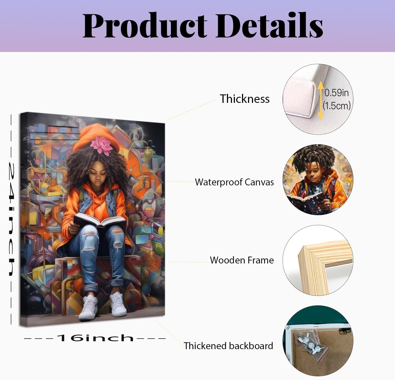 Celebrate culture, education, and inspiration with this African American Reading Canvas Wall Art Set of 2. Designed with empowering portraits of a Black girl and Black boy reading books, this framed wall decor highlights the importance of knowledge, self-confidence, and creativity, making it a meaningful addition to your home or study space. Crafted from high-quality canvas with fade-resistant inks, each piece offers vivid colors, crisp details, and a durable wooden frame. Measuring 16x24 inches, these framed prints are the perfect size to display together as a set or individually in different rooms. This inspiring African American wall art is ideal for many settings: Teen boys’ and girls’ bedrooms as motivational art that encourages learning. Reading rooms and study spaces as literature posters that create a thoughtful, bookish atmosphere. Classrooms, libraries, or offices as African American posters that celebrate culture and education. With themes of empowerment and beauty, these Black art wall decor pieces make a meaningful gift for teenagers, students, educators, and book lovers. Perfect for birthdays, graduations, or housewarming events, this inspirational canvas wall art adds both style and purpose to any wall. Bring life, culture, and inspiration into your space with this African American art wall decor set a celebration of heritage, education, and the love of reading.