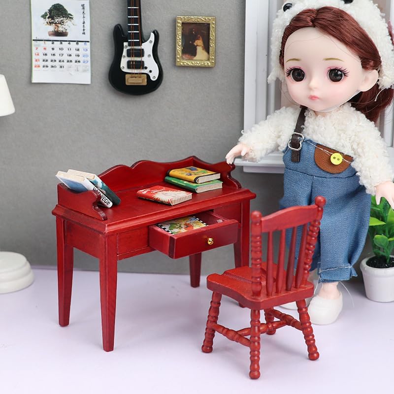 Price is for 1 desk, 1 chair and 6 dummy books ONLY, NOT including the other decoration items on the photos: * Scale: 1/12; * Material: Wood; * Desk 9.8*4.7*8cm, chair 4.2*4.2*7.8cm