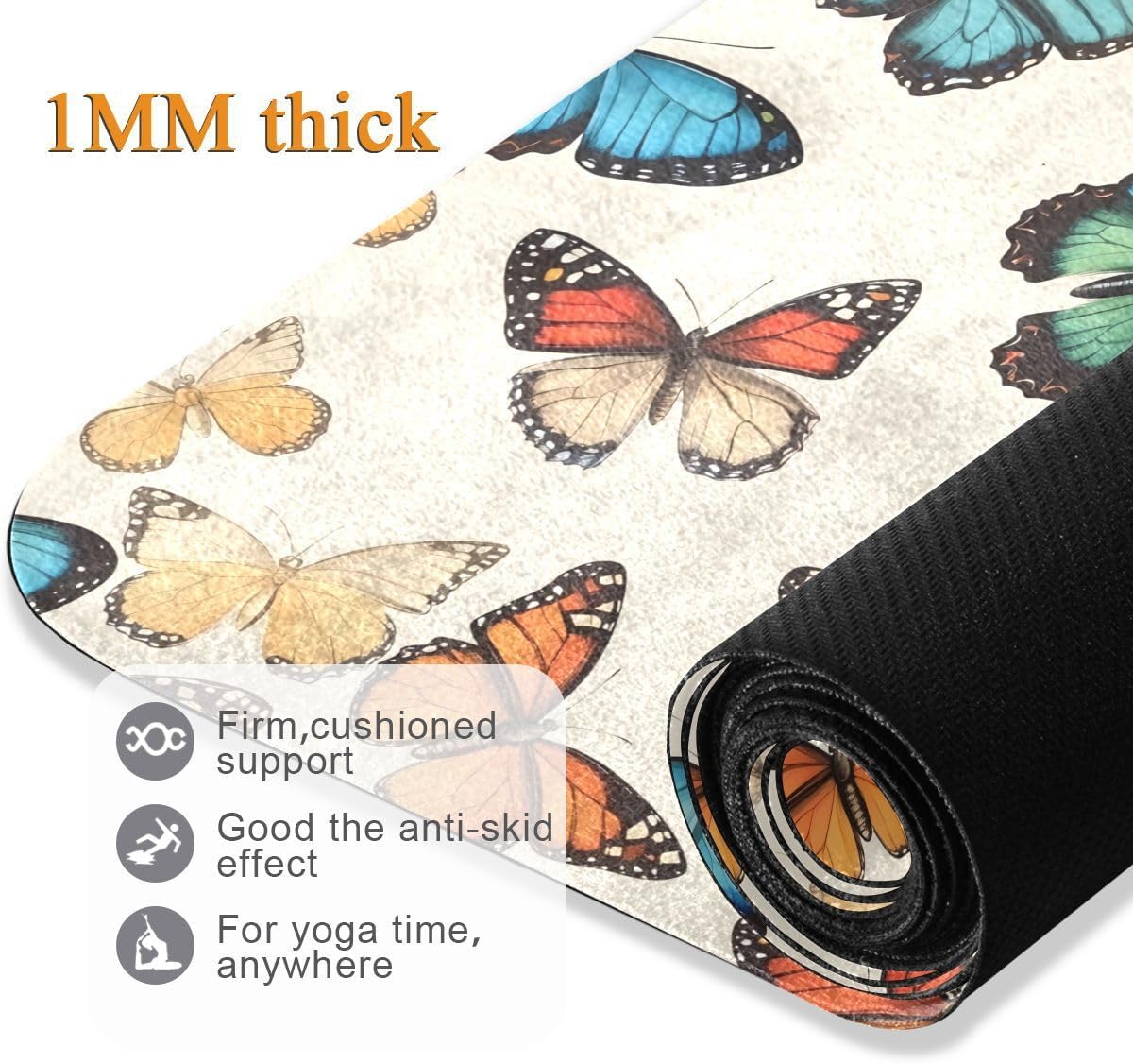 ALAZA Butterfly Pattern Yoga Mat Non Slip Fitness Exercise Mat, Workout Mat for Yoga, Pilates and Floor Exercises