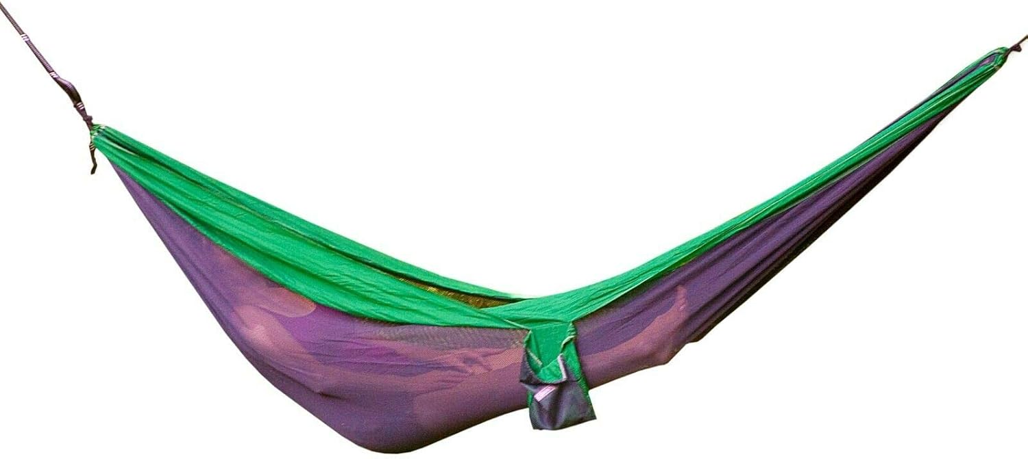 Perfect for camping hammock. Quick and easy installation. Easily folds into bag. The bag is attached to the hammock and serves as a pocket to store items.