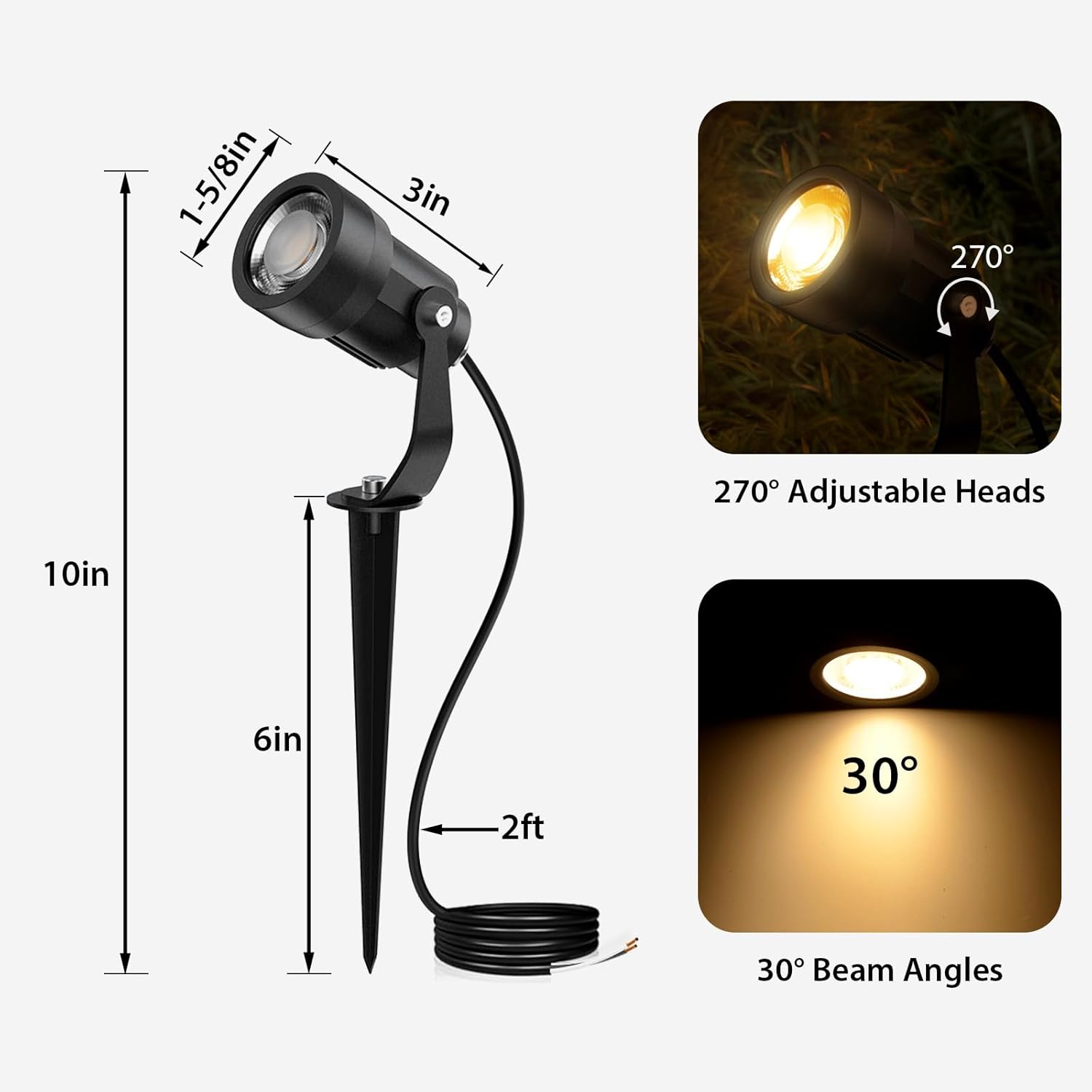 | Included Components | 12x Low Voltage Wire Connertors, 12x Warm White Low Voltage Spotlights, 1x 100FT 16 AWG Low Voltage Landscape Wire, 1x 65W Low VoltageTransformer, All Mounting Accessories Include |
