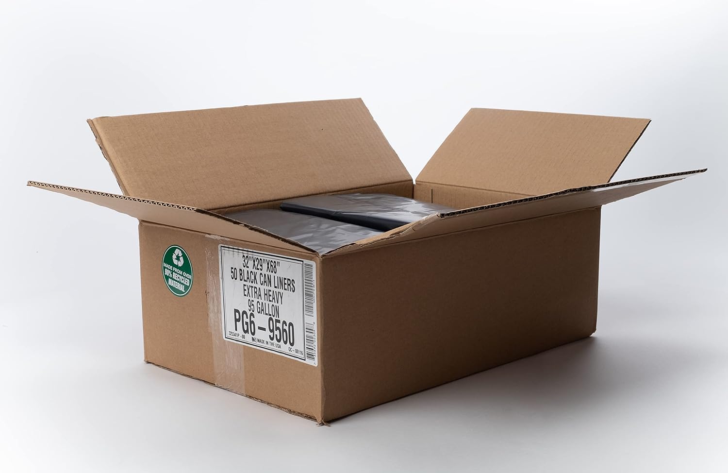 Aluf Plastics - PG6-9560 Heavy Duty 95 - 96 Gallon Trash Can Liners - (Huge 50 Pack) - 2.0 MIL Thick Garbage Bags,Black.