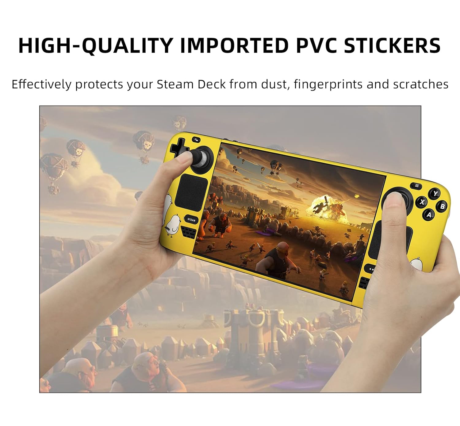 Vinyl Skin for Steam Deck specification: Compatible model: Steam Deck Material: premium Vinyl Features: 1. High quality: The use of high-quality Vinyl materials can not only repeat pasting, but also the air guide groove on the back can easily release air bubbles, so it can be easily pasted. 2. No residue: When peeling off the sticker, the high-quality glue will not leave any residue on your drone. 3. Precise cutting: The unique cutting process is very suitable for the Steam Deck without warping.