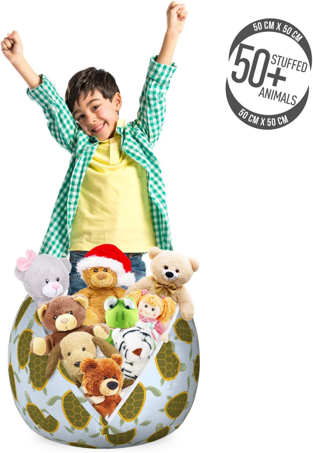 Small size - You can stock over 50 plush toys in bean bag. Measurements: 22" W X 15" H when full.Made from - High-quality, soft %100 polyester fabric. Machine washable and durable. Stuff and sit.Features - Zipper closure. Easy to carry with large sturdy handle. Effective space saver. Practical.High capacity - Can store your stuffed toys blankets pillows nets hammocks seasonal clothes & more.Printed - With state of the art digital printing technology. Only case, any insert is not included.Fill and have fun with our space saver bean bag for storage. It's a soft and cuddly way to store all your stuffed animals and soft toys; you can also stock extra pillows, blankets, sheets, nets, hammocks, towels, comforters, sleeping bags, or even seasonal clothes. It'll be your helper with its high capacity. It's also decorative; after you replace all the mess you can sit on and enjoy yourself. A perfect solution to open up some room to spare. It's suitable for anyone with thousands of different patterns. Can be a birthday or Christmas present for your loved ones. 2 different size options available: small and large. Easy to care for and easy to clean. Machine washable on cold delicate cycle, tumble dry on low. Read, snuggle, lounge, flop, and play on besides organizing stuff. Decorate your kids' room, playroom, or family room with this useful storage bean bag. The bag itself is lightweight and portable when empty. Has a large handle so you can easily carry it around, put it in your room, garden, or any place you want it to be. Due to manual measurement, please kindly allow a 1-2 cm discrepancy. The digital images we display have the most accurate color possible but due to differences in pc monitors, we can't be responsible for variations in color between the actual product and your screen. Only case, insert is not included.