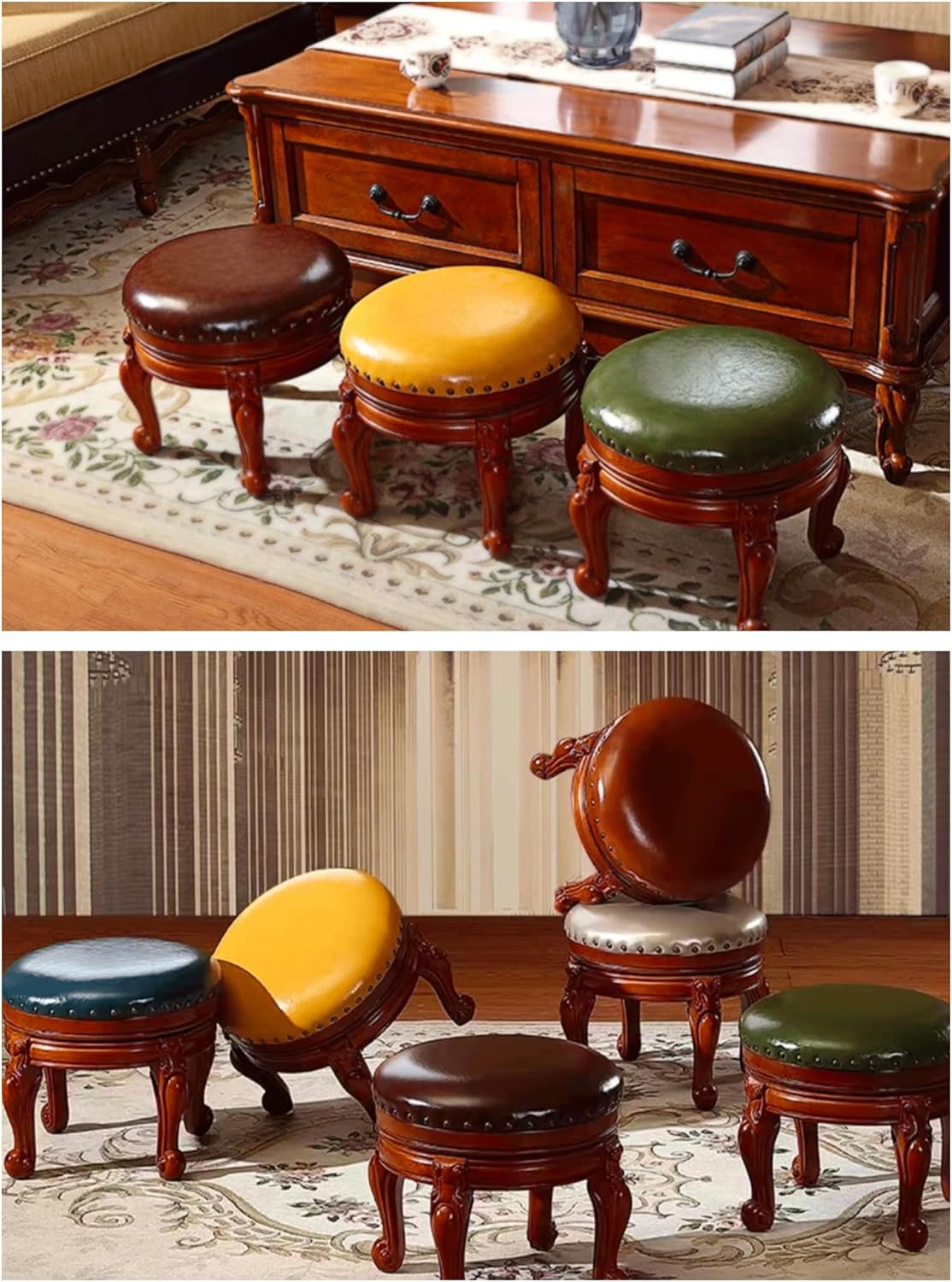 With good looks and strength, small leather stools can be placed everywhere in the home, living room, bedroom, balcony, hallway and other places for you to placeThe footstool is made of high-quality oil wax leather eco-friendly material, retro, beautiful, exquisite, solid structure, and the decorative appearance matches your interior decoration and furniture to meet your home decoration needs.Specification:Style: AmericanName: low stool / footstool / footstool /milking stool / sofa tea stoolDimensions: 38x30cm/15x11.8 inches1. Carefully handmade, each piece is unique2. Hand-painted carving, elegant and exquisite. American style, ultimate luxury, easy to assemble.Wrap:1* OttomanNote:1. Please understand that due to different displays, different lighting environments and other factors, the physical color may be slightly different from the picture color.2. Due to manual measurement, the error is usually between 1-3 cm.If you have any suggestions, please contact us and the reliable, friendly customer service will respond within 24 hours.