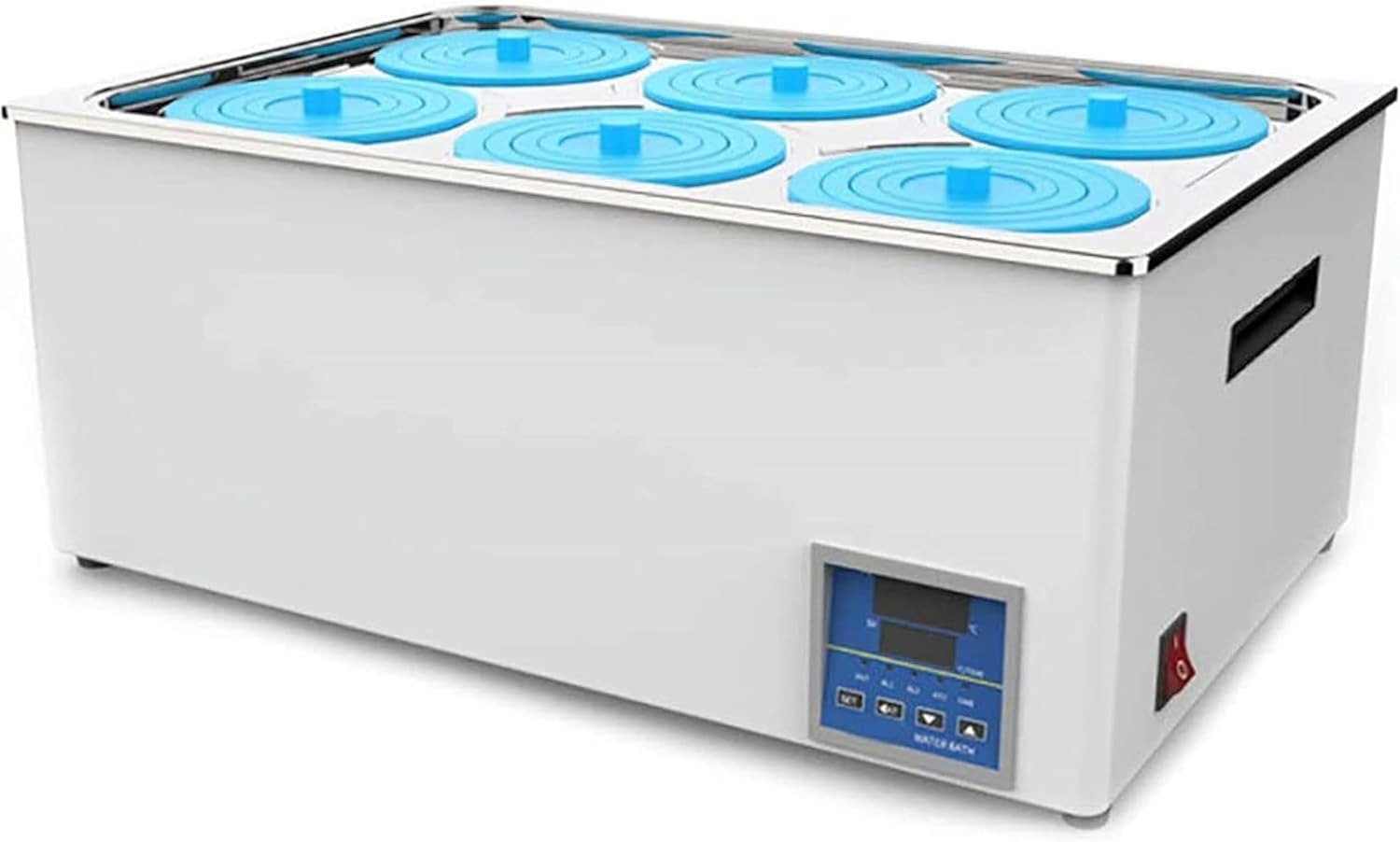 Digital constant temperature water bath, single hole, double hole, 4 hole and 6 hole availableFunction:1. It can be adjusted in steps of 0.1 ° C, with a temperature that can be precisely adjusted from room temperature to 100 ° C, and is easy to control using a built-in timer from 0 to 999 minutes.2. The dual digital screen covers a protective frame, ensuring excellent accuracy and performance to easily maintain the desired water temperature3. The electric heating tube is made of stainless steel and directly immersed in the water tank for heat exchange. High calorieSpecifications:Name: Digital Thermostatic BathroomModel: 1 lake, 2 lakes, 4 lakes, 6 lakesTemperature range: room temperature to 99.99 ° CPower supply voltage: 220V50HZPerformance: 300 watts, 600 watts, 800 watts, 1200 wattsInternal wall material: stainless steelEffective volume: 2.5 liters, 5 liters, 8 liters, 15 litersConstant temperature resolution: 0.1 ° CTime function: YesStudio dimensions: 160 x 160 x 130 mm, 300 x 150 x 140 mm, 300 x 300 x 140 mm, 450 x 300 x 130 mmWeight: 3.1 kg, 4.5 kg, 6.35 kg, 9 kgThis package includes:1 number Maria Bathroom1 stainless steel cover1x power cord1 x manualNote:1. This product is provided in the form of physical benefits. Due to factors such as lighting and equipment, there are some differences in color.2. Due to different measurement postures, the dimensions may vary.