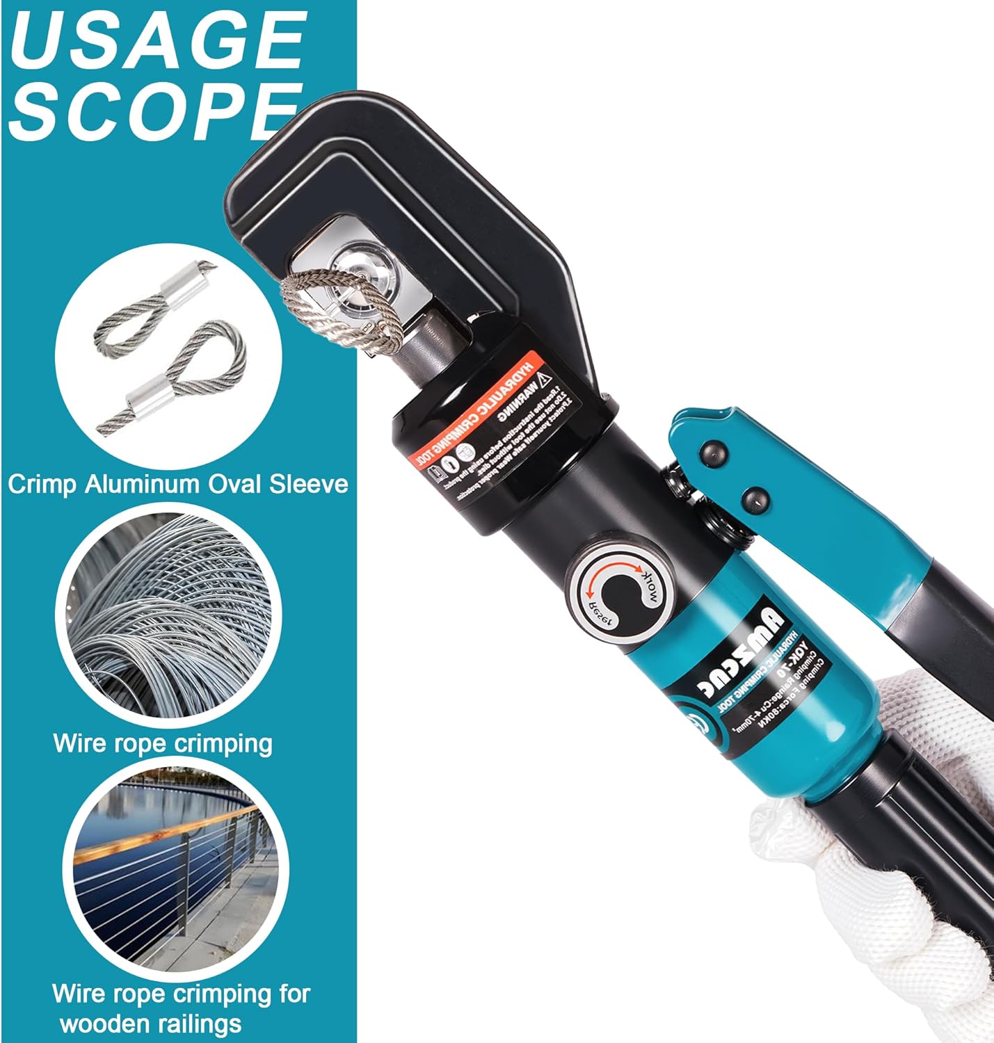 | Included Components | Crimping die, Hydraulic crimper, Wire Rope Cutter |