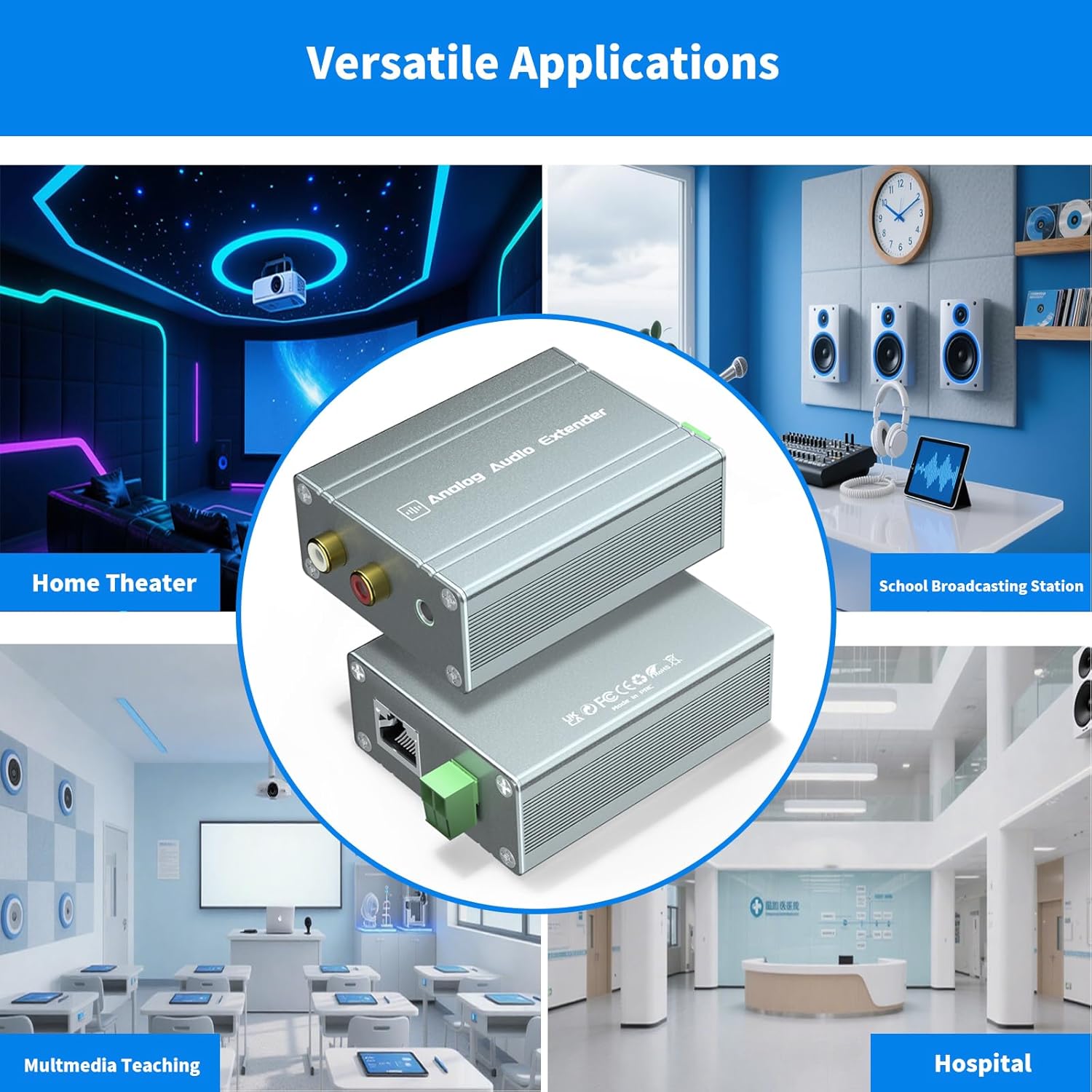 Powerful Analog Audio Extender RCA to 3.5mm Stereo - 3280ft(1000meter) Premium Transmission Key Features: 1.【Zero-Power Operation 】Smart self-adapting technology requires no external power supply 2.【True Plug-and-Play】Instant setup with automatic signal recognition (No drivers needed) 3.【3280ft/1000m Hi-Fi Transmission】Professional-grade 24AWG oxygen-free copper cable maintains 20Hz-20kHz full frequency response 4.【Studio-Grade Signal Processing】 ✓ Low-jitter differential line drivers ✓ 72dB SNR for crystal-clear audio ✓ Advanced EMI/RFI shielding eliminates humming/buzzing 5.【Aerospace-Grade Aluminum Housing】Military-standard EMI shielding with superior heat dissipation 6.【24/7 Industrial Reliability 】Tested for continuous operation in -20°C to 60°C environments 7.【Universal Compatibility 】Perfect for: Home theaters (TV/DVD/Soundbar connections) Stage performances (Monitor signal extension) Conference systems (Boardroom audio distribution) Car audio upgrades (RCA head unit integration) Technical Highlights: ✓ Gold-plated connectors prevent oxidation ✓ 3-layer noise-isolation architecture ✓ <0.05% THD (Total Harmonic Distortion)