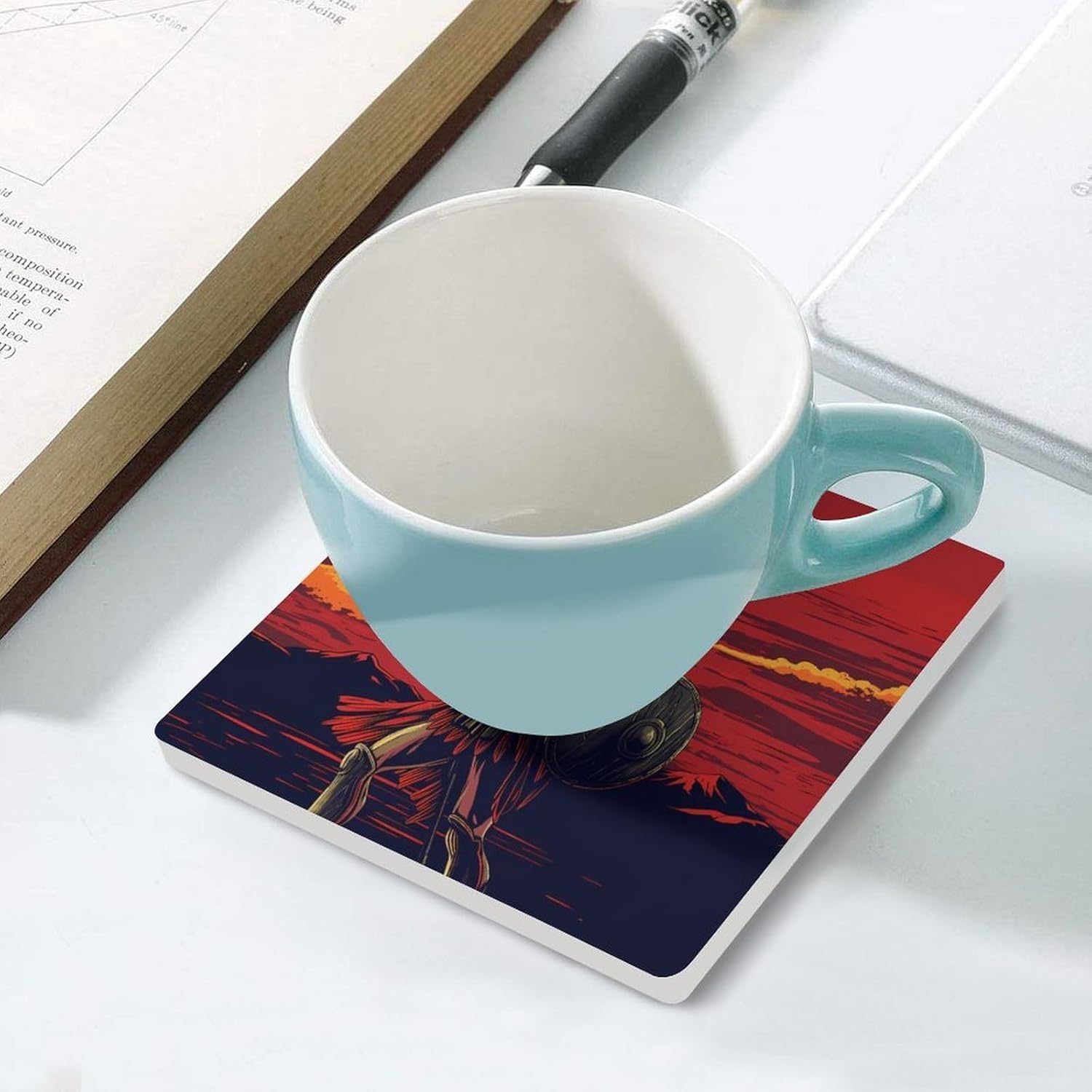 coasters,coasters set of 4,coasters set of 6,cute coasters with Funny Pattern Printed Ceramic Coasters with Cork Base Cup Holder Absorbent for Drinks Coasters Square Tabletop Protection Mat Decorative Cute Coffee Cup Beverage Coasters