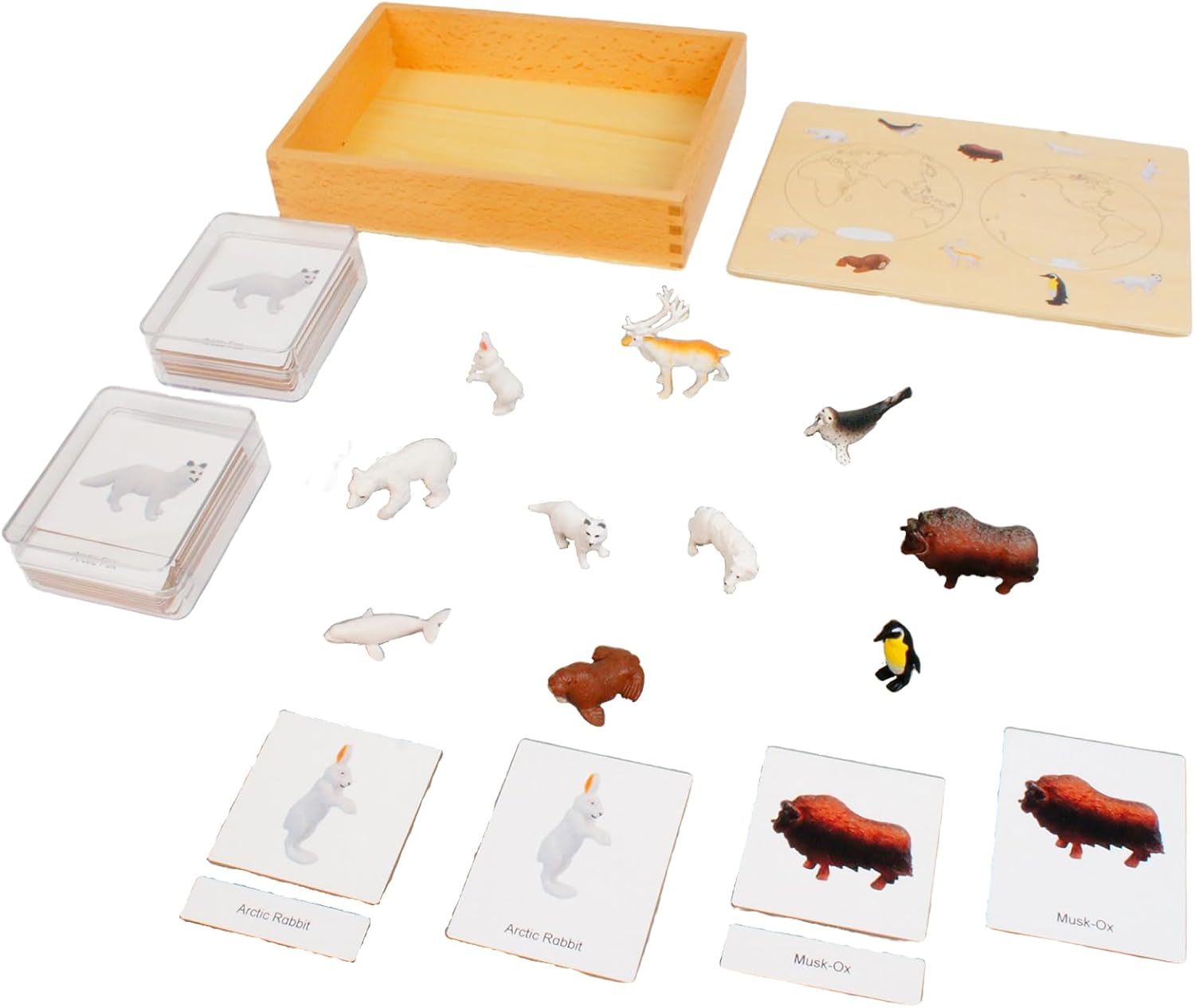 Discover the wonders of Asian geography with this comprehensive Montessori-inspired wooden learning set. The beautifully crafted wooden box contains detailed animal cards and matching miniature figurines representing various Asian wildlife. The set features a world map board with Asia highlighted, helping children understand geographical locations while learning about different animal species. The collection includes diverse creatures like tigers, camels, pandas, and cobras, each paired with corresponding identification cards. Perfect for hands-on learning, this educational kit allows children to match the figurines with their cards while placing them in their correct geographical locations. The durable wooden storage box keeps all components organized and protected. This interactive learning tool makes geography and wildlife education engaging and memorable for young minds. Ideal for classroom use or home learning, this set combines visual, tactile, and spatial learning methods to help children develop their knowledge of Asian geography and wildlife.