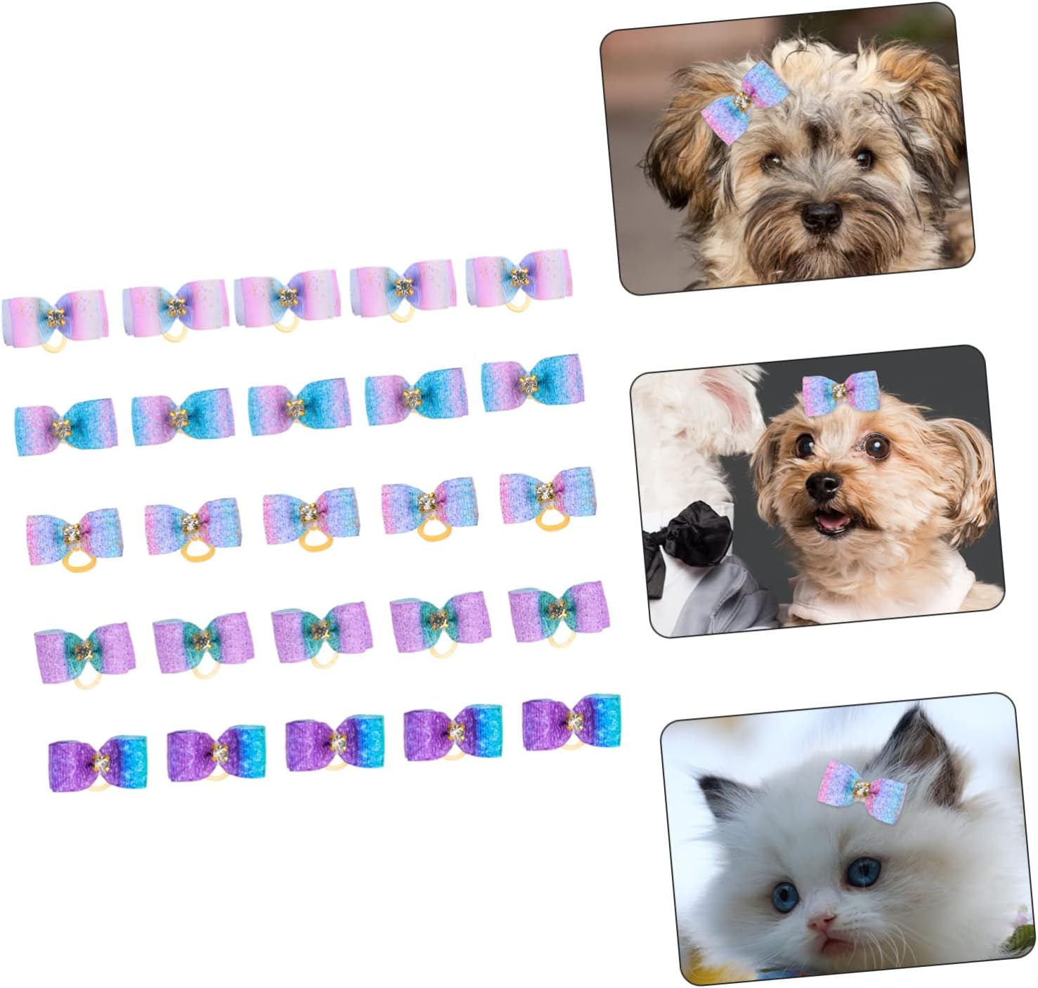 Package List 100 x pet hair ropes Characteristics -Size: About 3.50X1.50X1.50cm/1.38X0.59X0.59inch Decorative Dog Bows. -Material: Polyester Dog Cat Hair Tie. -Color: As shown Elastic Dog Hair Bands. -Creative bow design with various color make your pet looks more attractive and pretty Pet Hair Tie Bow. -With rubber band on the back, it can be tied on the dog's head, much Dog Bows. - and lightweight, dress up your dogs without any uncomfortable, let your dogs more lovely Dog Hair Tie Bow. - pet, great for your friends who have a pet dog or cat, they will like it Bows for Dog. -With excellent workmanship design, these pet hair accessories is suitable for any occasions Rubber Band Bow.Goods InformationPet Bow Hair Ring for various party.Dog Rubber Band Bow The hair bows designed with elasticity rubber band, convenient for wearing.Pet Bowknot Hair Band The pet grooming bows is attached to pet hair for a fancy hairstyle.Dog Hair Tie Bow elastic band design is easy to stay on your pet' s hair, and prevent it from sliding