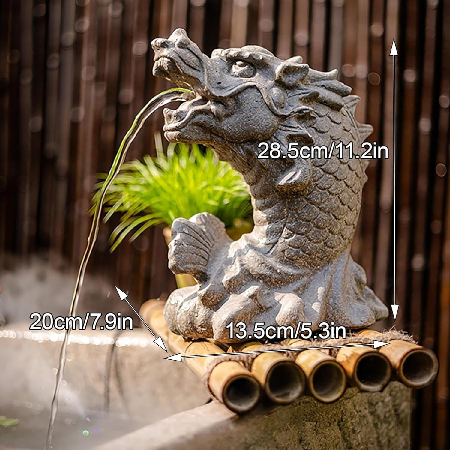Experience the mystery and allure of the Ancient Dragon Waterfall Garden Fountain. Its realistic dragon shape and intricate texture make it a truly unique and captivating choice for garden decoration.The exquisite details and lifelike appearance make GUAWJRZDP Spitter Pond Water Feature a stunning addition to any garden or outdoor space, a focal point that draws attention and creates awe.♦ Product parameters:Product Name: Garden Water Feature Animal Statue/Dragon Garden FountainColor: Gray Material: Cement composite materialSize: 13.5x20x28.5cm/5.3x7.9x11.2inUse: Garden, Pond, Pool, etc.Package includes:1 x Animal Pond spitters♦ Note:1. There may be some differences between the picture and the product due to display and lighting, please refer to the actual product.2. Because it is processed by hand, the finished product usually has an error of 1-2 cm, please understand.