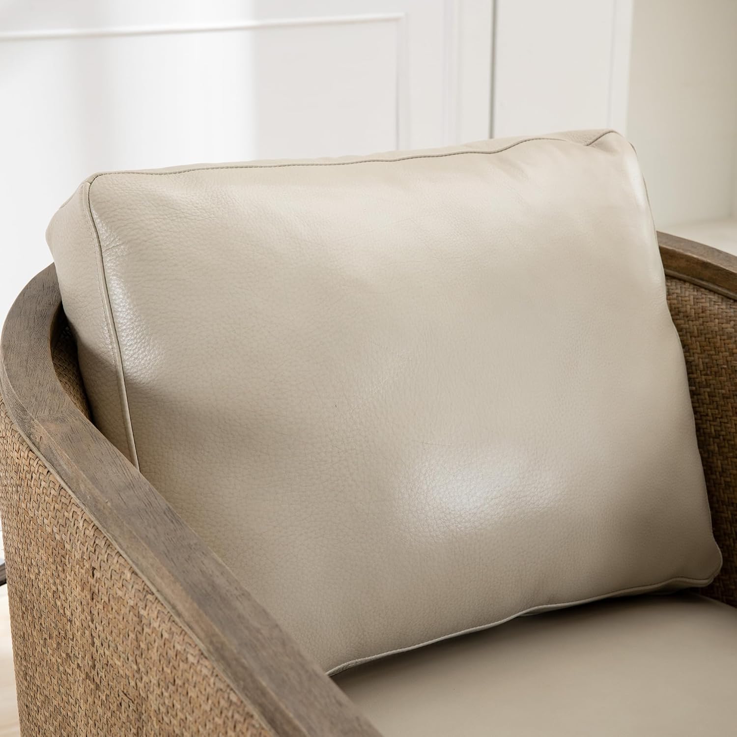 Looking to enhance your space?This rattan accent chair combines rustic charm with modern sophistication. The natural rattan frame and luxurious brown leather create a stylish, eye-catching piece perfect for any room. Whether placed in your living room or bedroom, this chair living room will add a touch of elegance and warmthNeed a comfy spot to unwind?This comfy reading chair features plush cushioning and soft leather upholstery, offering ultimate relaxation. Its wrap-around backrest provides excellent support, making it the perfect choice for long hours of reading, chatting, or simply enjoying your favorite activitiesWorried about space?This chair’s compact design makes it the perfect fit for small rooms or tight spaces. Whether used as a small chair for bedroom or placed in a corner, it offers a cozy yet stylish seating solution without overwhelming the space. Its dimensions of 30.1''D x 35.4''W x 30.3''H ensure it fits effortlesslyLooking for a chair that will last?This single sofa chair is built to withstand everyday use. With a sturdy hardwood frame and a durable metal swivel base, it’s designed to support up to 300 lbs, ensuring long-lasting durability and reliability for years to comeNeed versatility?Whether you’re adding a cozy reading nook chair to your bedroom or a stylish accent in your living room, this chair adapts to your needs. Its elegant design and smooth 360-degree swivel make it a practical addition to various settings, from offices, clubs to nurseries, while enhancing your space’s aestheticPlEASE NOTE: All colors on our website are for reference only, actual product colors may vary slightly due to different color settings for each screen device.Most of our products are measured by hand, so dimensions are for reference only and may vary slightly.Customer Service: From setup inquiries to troubleshooting, you can contact our customer advisory team anytime, your satisfaction is our top priority.
