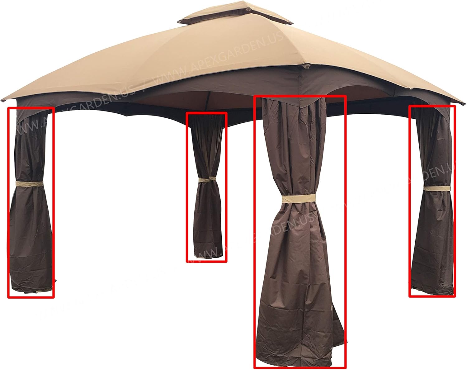 APEX GARDEN 4 Poles Brown Corner Curtain Set for Lowe's 10' x 12' Gazebo Model #GF-12S004BTO / GF-12S004B-1 (Corner Curtains Only) (Dark Brown)