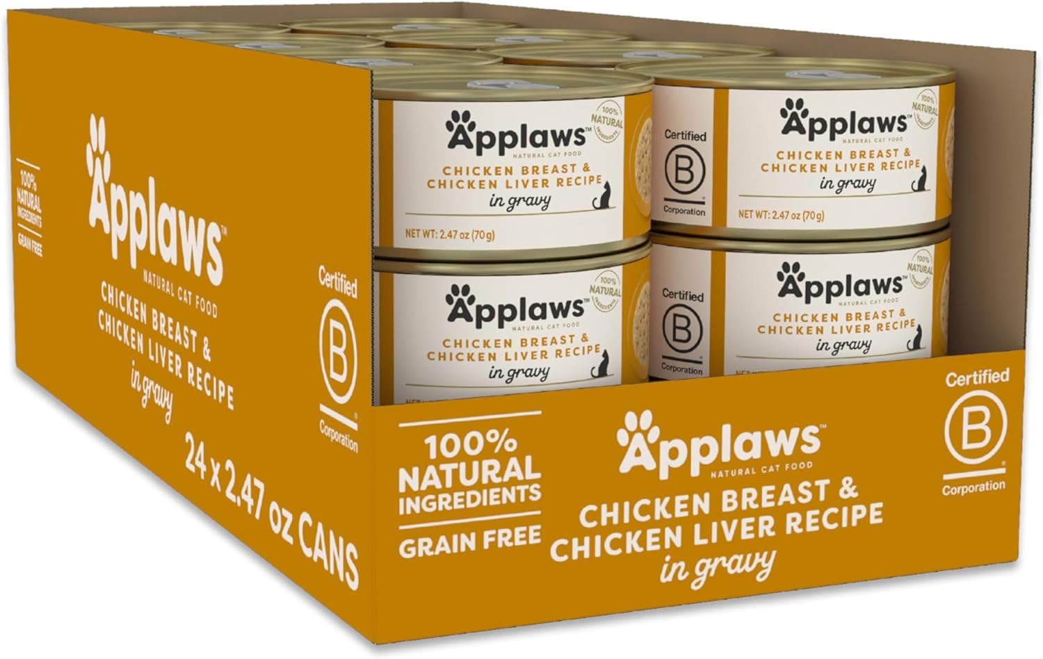 Welcome to Applaws. The home of adventurous minds & even more adventurous appetites. Your cat is one of a kind & we want to satisfy their curious nature & ever-changing taste buds. With a variety of naturally delicious s on our menu, we’ve got just the dish for them- whatever their personality! At Applaws, we believe happiness is natural. A happy & healthy cat starts with food made from the highest quality ingredients, we only put in the good stuff! Deliciously natural, our food is free from artificial preservatives, colors, & flavors & all s are made with 100% natural, limited ingredients. With high quality protein always the first ingredient, your cat’s natural cravings will be met! Feed your cat’s curiosity with textures like savory gravy, hydrating broth, or creamy mousse. Mix it up from poultry to fish. With a variety of flavors & textures to choose from, each mealtime is its own adventure with Applaws. Our wet cat food can be paired with any complete dry cat food as a complementary addition to their daily feeding regimen. Made with delicious, natural ingredients your cat will love, enhanced with vitamins & minerals, Applaws dry cat food contains everything your cat needs & wants for a complete & balanced diet. A Carefully crafted that provides an excellent level of complex natural carbohydrates to help keep your cat healthy & active. The menu doesn’t have to end there! Keep your purring pal playful with deliciously natural treats, made with only 1 ingredient, real protein! A Taste Adventure for Every Cat are our specialty, you can truly trust the Natural Goodness in Applaws. At Applaws, we are dedicated to providing your purring pal with the finest nutrition while also making a positive impact on planet. We are proud to have achieved B Corp certification since 2021, a mark of distinction that reflects our commitment to operating as a responsible & ethical business. We believe in creating a positive impact not only on our consumers, but also on People, Pets & Planet.