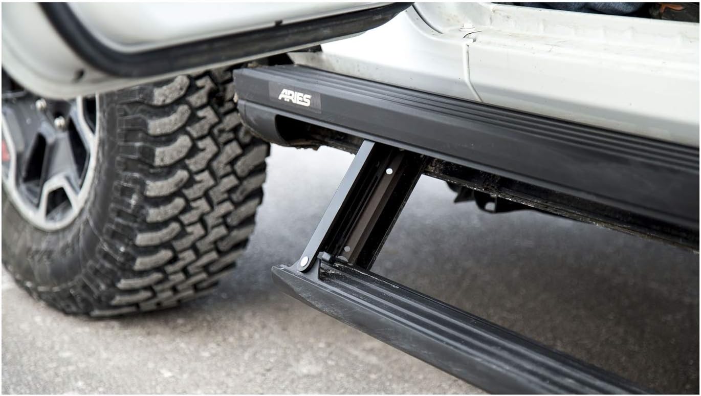 ARIES ActionTrac powered running boards are unique from other power side steps because they are actually two steps in one. This patented step-within-a-step design -- combined with a no-drill bracket installation on most models, control module operation and powder-coated aluminum construction -- truly makes these retractable running boards an asset for the offroad truck or Jeep, particularly as lifted truck steps. ActionTrac powered running boards have one 4" wide step on top of the main housing and one 3" wide that automatically deploys as needed. When the door opens, the control module deploys the power step 8" below the main step, 15" below the doorsill, depending on the model. This two-step design offers enhanced safety and easier vehicle entry and exit, especially on large, lifted vehicles. It's also very helpful for families with young children and for elderly passengers. The boards contour to the vehicle and offer extra protection for the rocker panels from small road debris. For additional safety, the module is able to detect any obstructions during operation to avoid pinch hazards. LED lights are also built into the housing to illuminate the steps when deployed. ARIES ActionTrac powered running boards are made for vehicle-specific installation for a custom fit. They use pre-existing factory holes for the brackets to eliminate drilling on most models. They also do not require any splicing into factory wiring. These particular running boards fit specific years of the Ram and Dodge Ram 1500, 2500 or 3500 (see application info to verify fitment). Each set is constructed from powder-coated aluminum to be strong, lightweight and non-corrosive. The quiet, maintenance-free rotary motor is shielded within the main housing, along with the power step pivot points and all electrical components, protecting them from the harsh elements. NOTE: Boards, brackets and wiring are included.