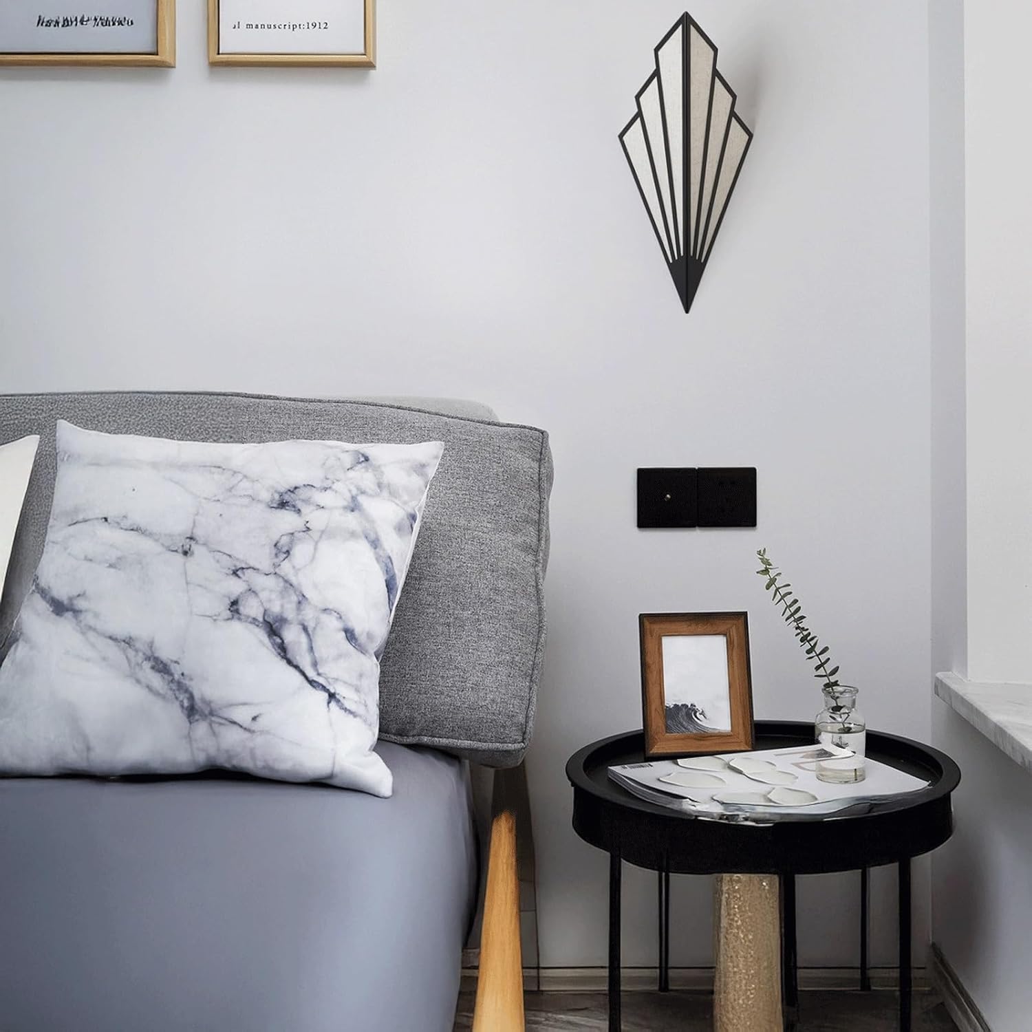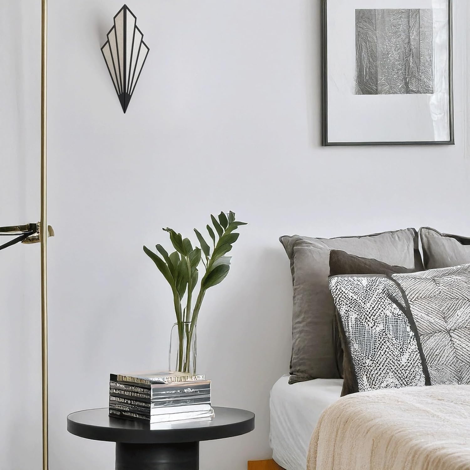 Product Parameters:Type: Wall Sconce / Wall LampStyle: Art Deco, Modern, Geometric, Fan-shaped, Decorative, Ambient LightingMaterial: Iron Art (frame)Color: Black (frame), White (inner panels)Dimensions:Height (Overall): 16.9" (43cm)Width (Overall): 7.1" (18cm)Wall Projection: 6.7" (17cm)Light Source: LEDOptimized Special Feature: This striking Art Deco style wall luminaire features a bold geometric fan design, crafted from iron art with a sophisticated black and white finish. It provides elegant up & down ambient lighting, creating a dramatic and artistic shadow play on the wall. The segmented fan shape, reminiscent of classic Art Deco motifs, makes it a powerful decorative statement piece. With its LED, it offers warm, inviting light. Perfect for living rooms, bedrooms, or hallways, it adds a touch of vintage glamour and modern elegance to any interior.Applicable Space: Ideal for Living Room, Bedroom, Hallway, Entryway, Dining Room, Hotel Rooms, or any space desiring Art Deco design, geometric aesthetics, up & down lighting effects, and decorative appeal.