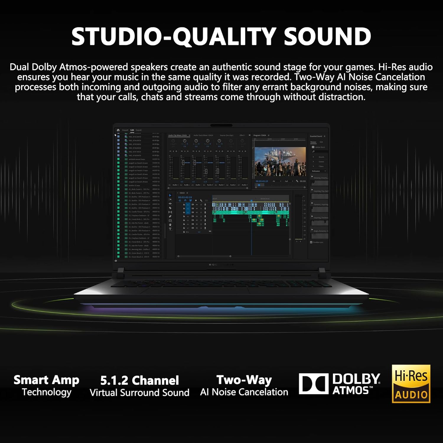 KEY SPECIFICATIONS: PC Type: Gaming Laptop Computer PC Series: ASUS ROG Strix G18 Processor: Intel Core Ultra 9 Processor 275HX 2.7 GHz (36MB Cache, up to 5.4 GHz, 24 cores, 24 Threads); Intel AI Boost NPU up to 13TOPS Memory: 64GB DDR5 Storage: 4TB SSD Graphics: NVIDIA GeForce RTX 5070 Laptop GPU 8GB GDDR7 Display: 18" 2.5K (2560 x 1600, WQXGA) 16:10 aspect ratio, 500nits, 240Hz/3ms IPS-level, 100% DCI-P3, Anti-glare Nebula Display Communications: Wi-Fi 7 + Bluetooth 5.4 Camera: 1080P FHD IR Camera Audio: Dolby Atmos, Smart Amp Technology Keyboard: 4-Zone RGB Backlit Keyboard Battery: 90WHrs, 4S1P, 4-cell Li-ion Operating system: Windows 11 Professional Ports & Slots: 1x 3.5mm Combo Audio Jack1x HDMI 2.1 FRL3x USB 3.2 Gen 2 Type-A (data speed up to 10Gbps)1x USB 3.2 Gen 2 Type-C support DisplayPort / power delivery / G-SYNC1x Thunderbolt 4 support DisplayPort / power delivery1x RJ45 LAN port Additional Information: Dimensions: 15.71" x 11.73" x 0.93" ~ 1.26" Approximate Weight: 7.05 pounds