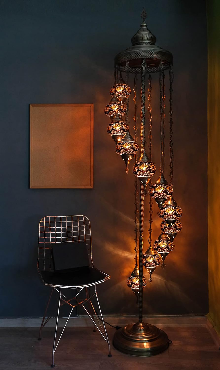 Product DescriptionMaterialColorful, mosaic glasses are used in our lamps. Colored filling is used to increase the strength of our glasses.The production of lamps is designed with the traditional production method as it has been for centuries.Our lamps are designed using traditional manufacturing art. Joint filling is applied in all our windows.Grouting application increases the strength of the glasses and allows them to be more durable.The metals used in our products are made of alloyed soft metal. Preferring soft metal makes it easy to shape by hand.Soft metal prevents breakage and damage in overturning.InstallationNo other tools are required during lamp installation. Easy to mount and use in your house or offices.Authentic bronze color is preferred in the metal parts of this lamp. It is easy to combine.BulbCompatible with daylight color bulbs and led bulbs.The glass you see in the picture was shot using daylight color 20 watt bulbs.Compatible bulbs are 5 watt-45 watt led or daylight colorEquipmentOur products include a 60 inc cable with an on-off switch. Lamps ship with US compatible plug.All Product Made for America with compatible electrical equipment. Made in Turkiye