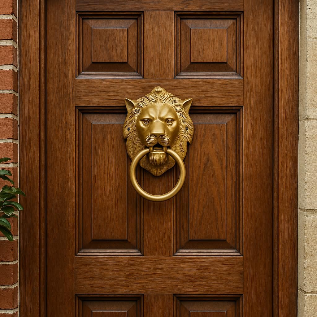 Brass metal door knocker gold finish for your room doors as well as entrance gate. It is for door hanging, wall hanging at home and temple. It can be placed on the East or North east of a child's room or home office to boost progress and prosperity. Enhance the decor value of the house, office, hotel, etc. Great for gifting during weddings. A Lion face made in brass is excellent negativity remover. Do not clean with harsh chemicals. Use Plain water and Clean Dry cloth. Brass is a durable metal and with time its age leaves a beautiful texture which makes it more valuable and attractive.