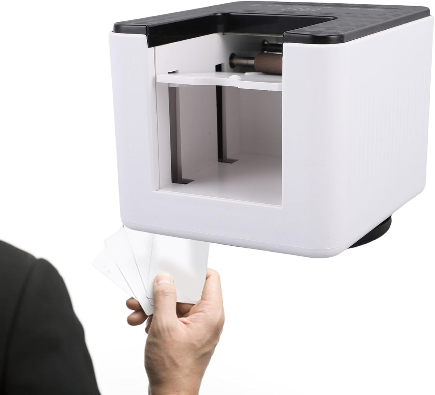 Product description 1. 2 in 1 Automatic r and Dealer: This innovative device combines shuffling and dealing functions, allowing you to effortlessly shuffle and distribute cards with just a press of a key, eliminating the hassle of manual shuffling. 2. Customizable Dealing Options: With the ability to rotate 180 or 360 degrees, this automatic r can dispense a customized number of cards to each player. In addition, the automatic card dealing machine can accommodate up to eight players. 3. Quiet and Stable Running: Equipped with a low noise motor and anti vibration base, this dealer operates quietly and steadily, creating a calm ambience ideal for long gaming sessions or social gatherings without interruptions. 4. Broad Compatibility: The expandable and open tray design can accommodate various card sizes, making it suitable for different types of games and decks, ensuring versatility for all your games. 5. Long Battery Life: Powered by a high capacity 4000mAh rechargeable battery, this automatic r and dealer can handle up to 400 decks of 54 cards on a single charge, making it an ideal choice for extended game nights and family gatherings. Specification: Item Type: Automatic Card r Dealer Material: ABS Built in Battery: Li Battery 4000mAh How to Use: Turn on and use. Package List: 1 x Automatic Card r Dealer 1 x USB Cable 1 x Instruction Manual Manufacturer Contact Information 1