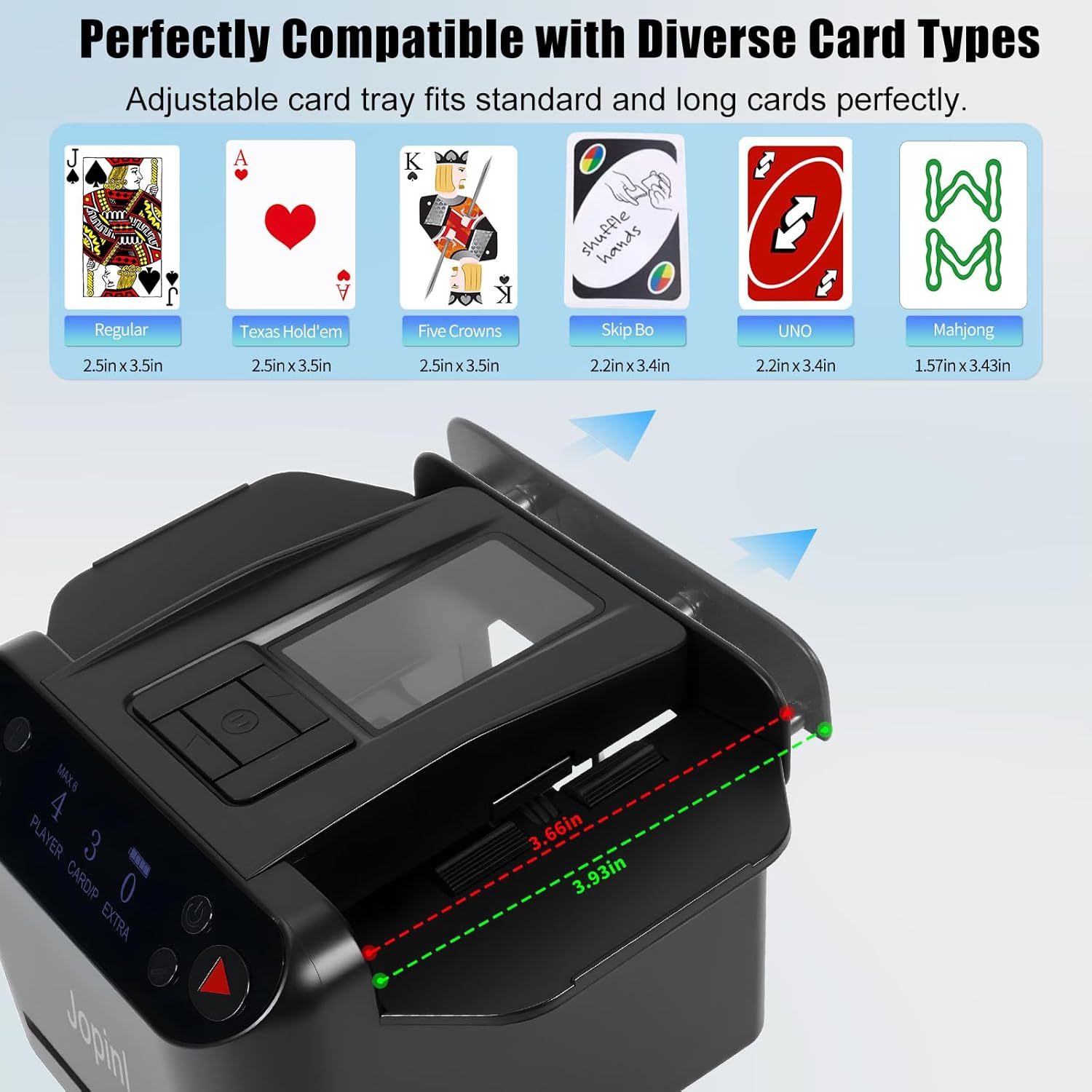 | Included Components | 1*Automatic Card Shuffler and Dealer Machine, 1*USB-C Charging Cable, 1*User Manual, 4*Remote |