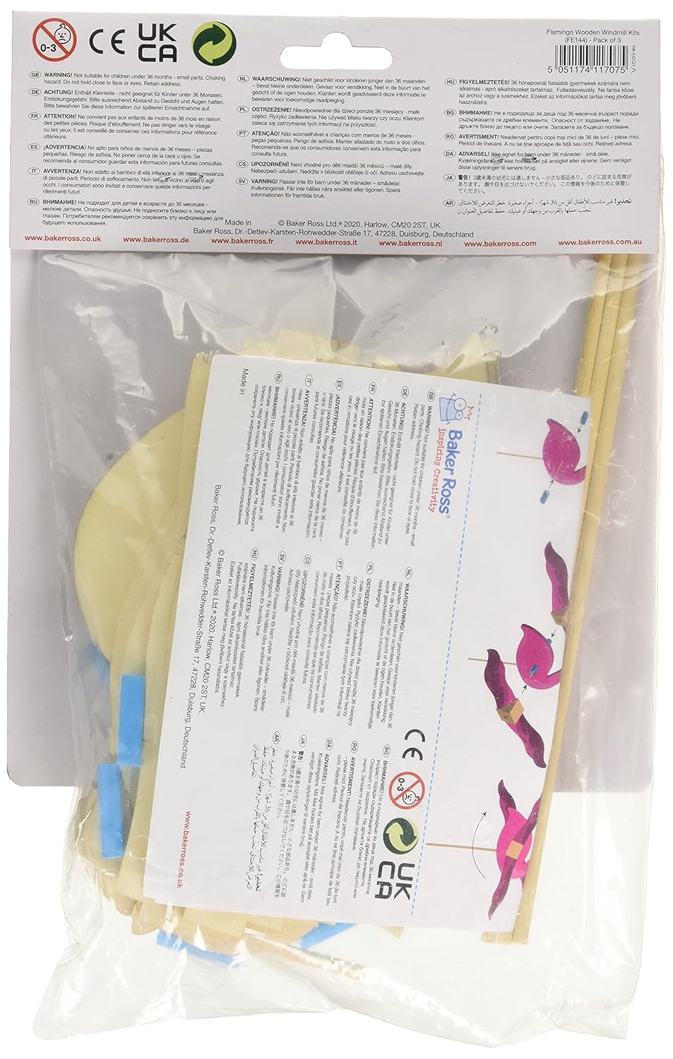 | Included Components | Baker Ross FE144 Flamingo Wooden Windmill Kits - Pack of 3, |