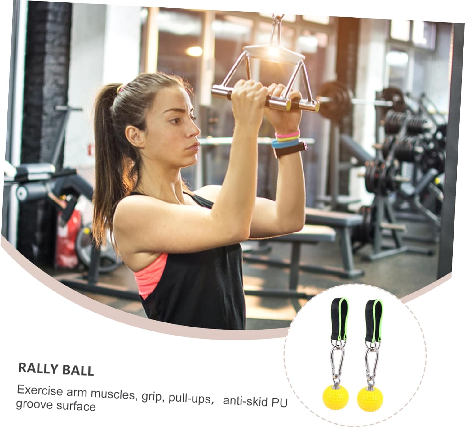 Package Include 2 x grip balls 2 x hanging rings Characteristics -Color: Yellow hand strengthener. -Size: 26.50X8.00X8.00cm/10.41X3.14X3.14in wrist strengthener. -Material: Stainless steel + PU hand strengthener grip. - You can get an intense upper arm workout with our pull-up bar hand grip strength trainer. - The pull-up have straps to increase your strength, ability, and endurance grip strengthener. - The pull-up , grips, comes with durable straps to workout your fingers, forearms, biceps, and back muscles grip strength trainer. - The climbing grips exercise and strengthen your arms and hands hand grip strengthener. - The pull-up , ergonomically designed, help you wrist exerciser strengthener.Goods Descriptionhand strengthener The climbing hold pull-up give you an -.grip strength trainer Equipped with straps, you can suspend from them, do pull-ups, or use the as hand weights while exercising.wrist exerciser strengthener If you're looking for accessible equipment to have in your gym while achieving different workouts, you need our gripping set of