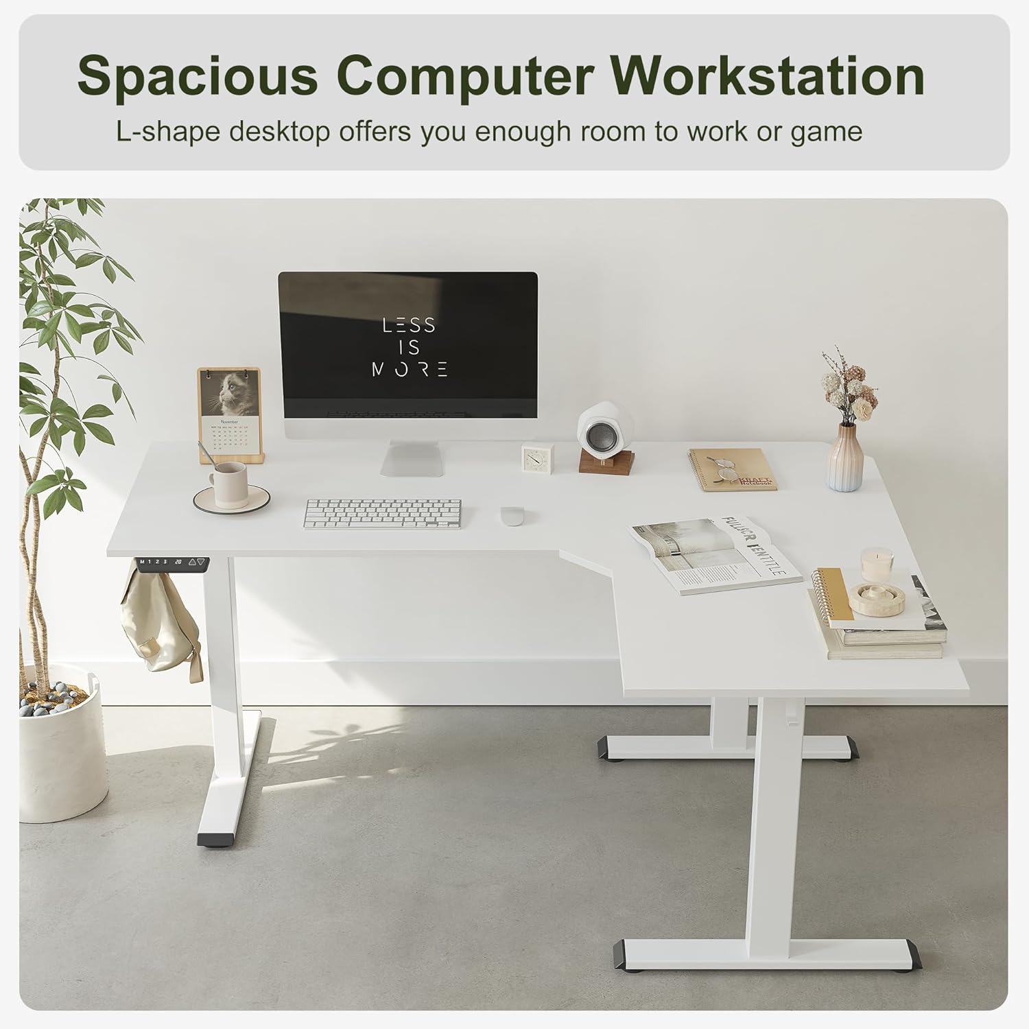 The BANTI L-Style Height Adjustable Electric Standing Desk helps you change the way you work. You can easily transition from sitting to standing in seconds, relieving neck and shoulder discomfort and back pain, and the large 75-inch workspace puts you in the ideal position to work more efficiently.