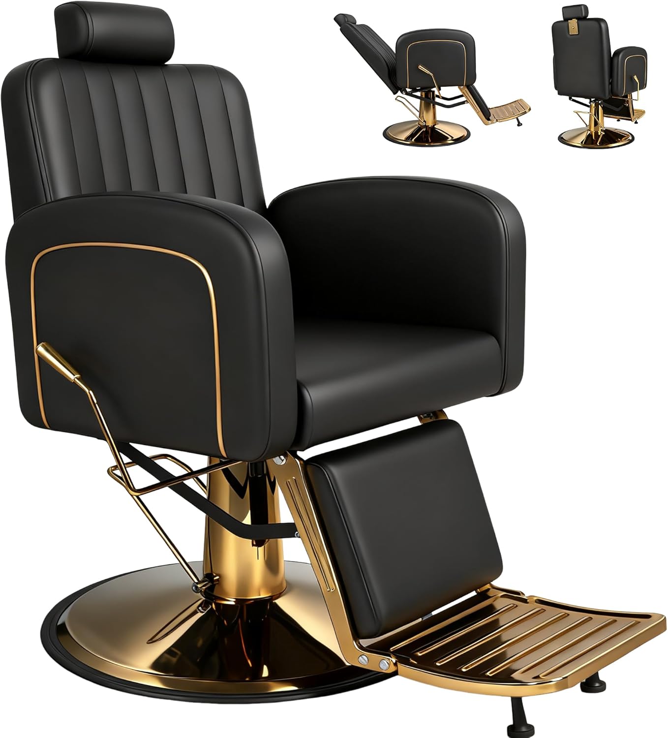 Experience the perfect blend of comfort, durability, and modern aesthetics with our Professional Hydraulic Barber Chair. Designed with smooth, rounded contours and a modern soft-edge silhouette, this chair adds an elegant yet professional look to any barbershop, salon, or spa. Every detail is carefully crafted to provide both visual appeal and ultimate comfort for you and your clients. Built with a heavy-duty steel frame and a 27-inch chrome polished base, the chair provides solid stability and supports up to 440 lbs without wobbling. The upgraded hydraulic pump allows smooth height adjustment, while the anti-slip rubber ring at the base keeps your floor protected and noise-free during rotation. The seat, backrest, and armrests are filled with high-density elastic foam, wrapped in premium waterproof PU leather that is both skin-friendly and easy to clean. This combination not only ensures long-lasting shape retention but also gives a luxurious touch and professional feel. For versatility and flexibility, the backrest reclines up to 150°, with adjustable headrest and footrest to fit clients of different heights and needs. The 360° swivel rotation with secure locking allows barbers to work efficiently from any angle. Whether it’s for haircuts, beard trims, facials, or tattoos — this all-purpose chair adapts to every service scenario with ease. Ergonomically designed with curved contours that follow the natural shape of the human body, it provides full support for the neck, back, and legs, reducing fatigue even during long appointments. Combining functionality and modern rounded aesthetics, this barber chair is not only a tool but also a statement piece that enhances the overall atmosphere of your workspace.