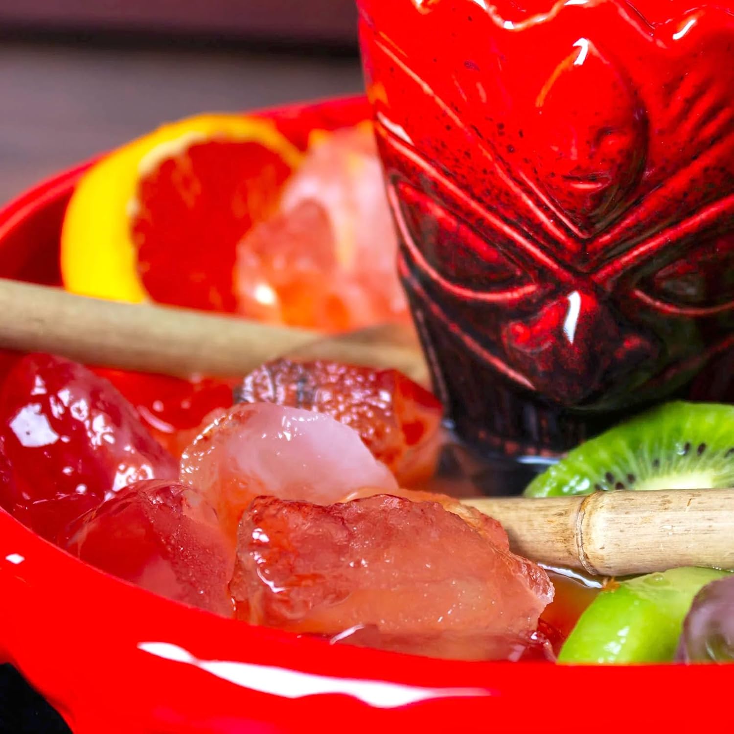 Expertly crafted from high-quality ceramic, the BarConic Hot Lava Bowl is perfect for sharing your favorite tropical cocktails with friends. Its vibrant, hand-painted design will transport you to a beachside paradise, making every sip a truly immersive experience. With its unique tiki-inspired design, this bowl is a must-have for any tiki bar or themed party. Measures 4.75" in height and has a rim diameter of 7.75". Has a liquid capacity of 36 ounces.