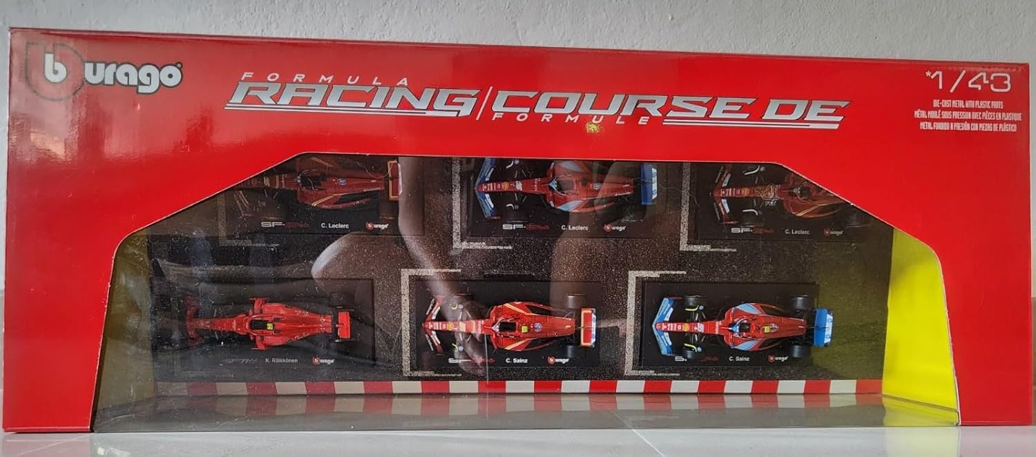 Bburago Ferrari Racing Formula 1 F1 Die-Cast Set brings the thrill of Ferrari’s racing legacy to your collection! This exclusive 2023 release features a stunning set of six 1:43 scale die-cast Ferrari Formula 1 cars, meticulously crafted to capture every iconic detail. Each car represents the speed, power, and precision of Ferrari's elite F1 lineup, making it an exceptional collectible for fans, young and old. Perfect for racing enthusiasts, die-cast collectors, or anyone passionate about Ferrari's iconic F1 designs, this set is a must-have addition that celebrates the best of Ferrari’s racing history in an elegant, display-worthy format.