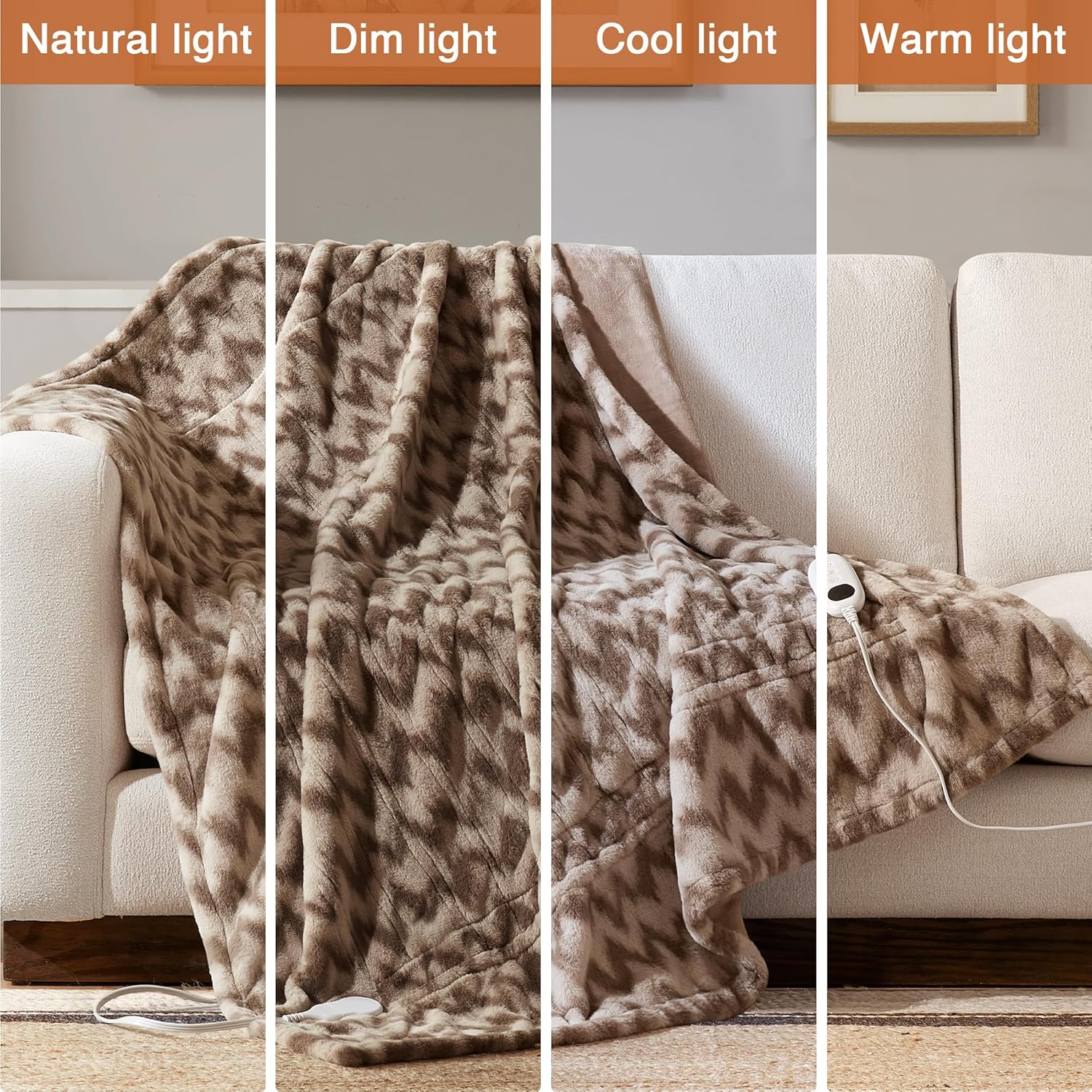| Material Type | Face: print faux fur, Back: solid plush; 9 setting controller Gift box Packaging |