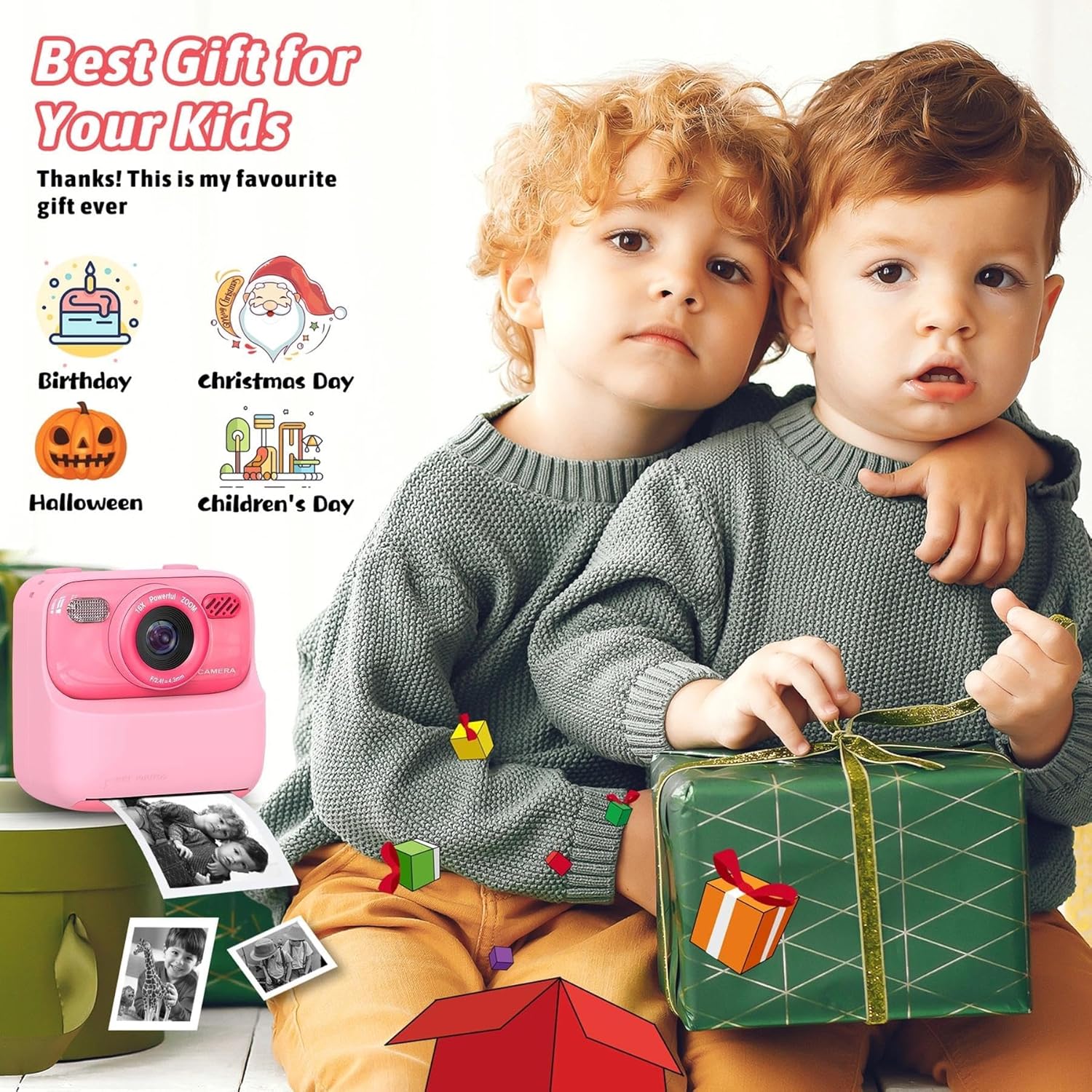 Instant Print / Take Pictures / 1080P HD Video / Selfie / Playback / 16x Digital Zoom / 20 Frames / 5 Filters / Burst Recording / Time-lapse / Games / Play Music / Kids Camera Instant Print Photo, Birthday Gifts / Christmas Gifts for Girls and Boys Age 3-12