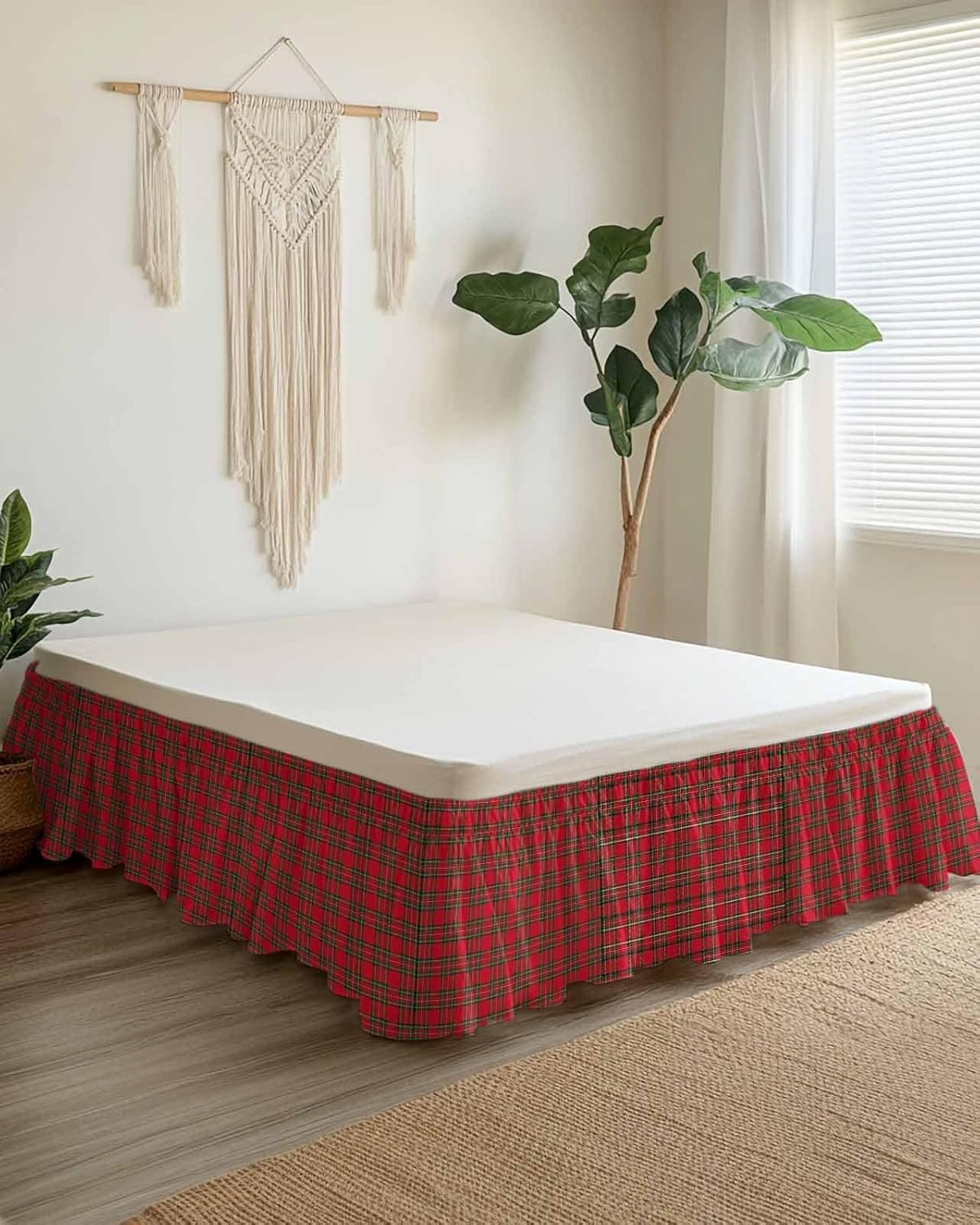 To most people, changing a bed skirt is a hard work, but this christmas bed skirt makes a hard work become so easy! Save your energy, save your time! Add a sophisticated style to your bedroom with our ruffled bed skirt. Easy to Install It is very easy to put on and take off. You don't need to lift the mattress. The bed skirt can be fixed on the bed by adjusting the length of elastic band. Even to a female,it is very easy to operate, very labor-saving and time saving. Sizes There are two sizes of bed skirt to choose from, queen 16inch and queen 18inch. The stylish ruffled drop can bring a new look to the bed and rejuvenate your bedroom decor Premium Microfiber Fabric Made from premium microfiber, our christmas queen size bed skirt won't tear, shred, fade, or shrink Elevate your sleep with a long-lasting material that's effortlessly pleasant to maintain Versatile Use The polyester bed skirt is very suitable for decorating your bed, can be applied in master bedroom, guest room, living room, hotel. Decorative bed skirt can complement your other bedding, curtains, and other room decorations.