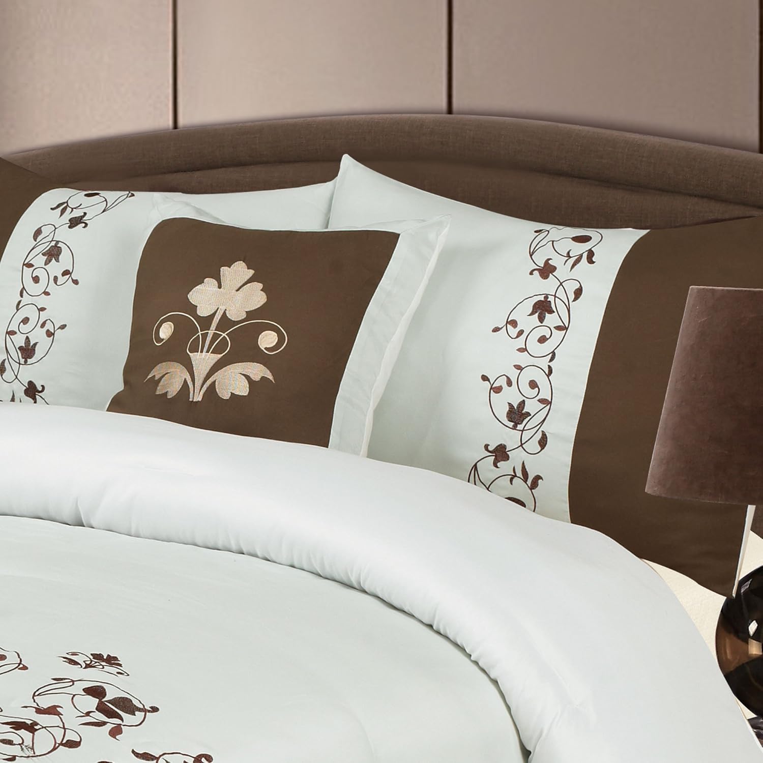 Warmth, comfort and style converge in this luxurious embroidered comforter set. Oversized for better fit. Revitalize the bedroom with this beautiful embroidered comforter set. Three decorative pillows further compliment the look.